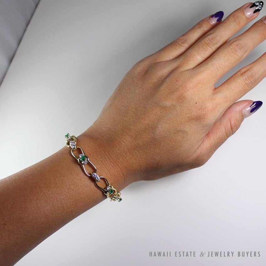 Description$2,500.001 in stockNATURAL INTENSE GREEN EMERALD & 1.55CTW DIAMOND 14K YELLOW GOLD BRACELET 7" quantityAdd to cartBuy withMake OfferSKU: 2017-05Category: Pre-owned Vintage & Jade JewelryTag: aquamarineRelated Styles1.65ct Natural Pink Sapphire and Diamond Ring$6,500.00Antique Victorian Pearl Old Mine Cut Diamond Circle Pin$2,100.00Estate Large 18mm South Sea Pearl Necklace$18,000.00Natural Grade A White Jade Archer Ring$3,800.00