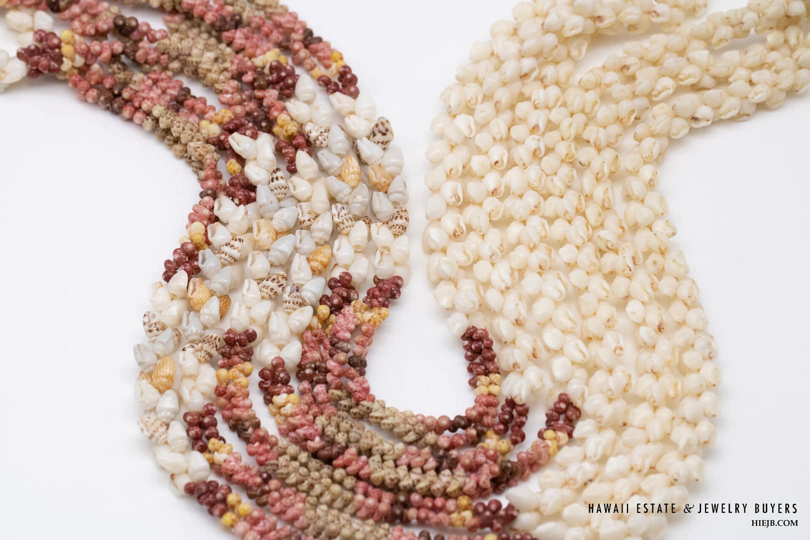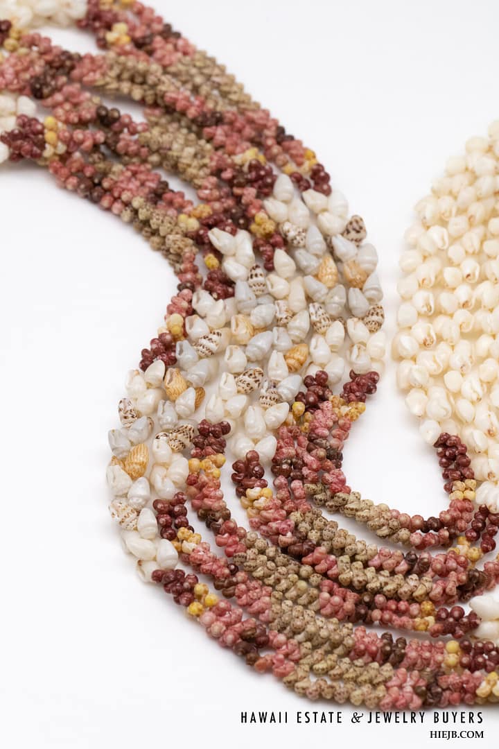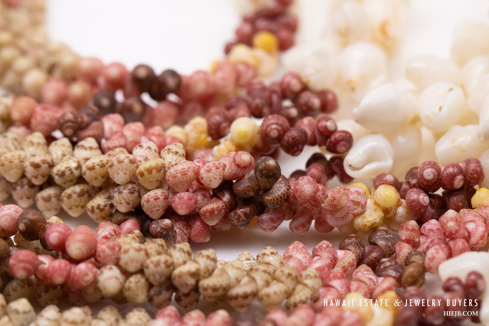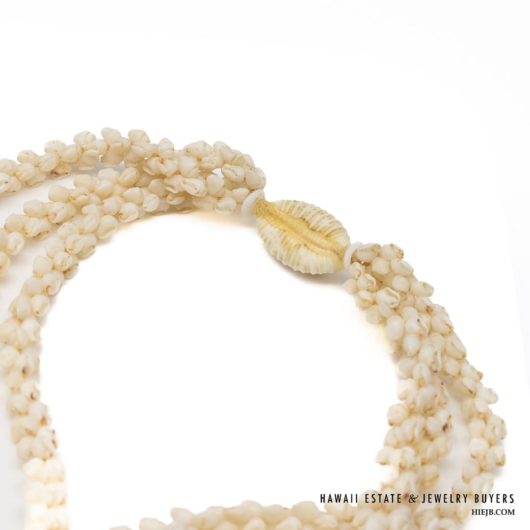 DescriptionNi’ihau shell lei is 36 inch length triple strand strung Kipona.Momi ke’oke’o, ule ule, onikiniki, and kahakaha are strung Pikake; Kamoa and kahelelani akala, oma’oma’o, ula ula and maku’e are strung pololei.Poleho is apu’upu’u.$10,000.00NI'IHAU SHELL LEI 3 STRAND KIPONA 36" LENGTH quantityAdd to cartBuy withMake OfferSKU: 030923-09Category: Pre-owned Vintage JewelryTags: NIIHAU, NIIHAU SHELL, NIIHAU SHELL LEIRelated StylesGIA CERTIFIED NATURAL GRADE A LAVENDER JADEITE JADE PENDANT W/ DIAMONDS$5,900.00Certified Grade A Mottled Green Graduated Bead Necklace$8,000.00GIA CERTIFIED MARQUISE NATURAL JADE APPLE GREEN COLOR JADE RING GIA JADE SZ 5.25$1,000.001.30ct Pear Shaped Diamond and Emerald Twin Antique Platinum Ring$20,000.00