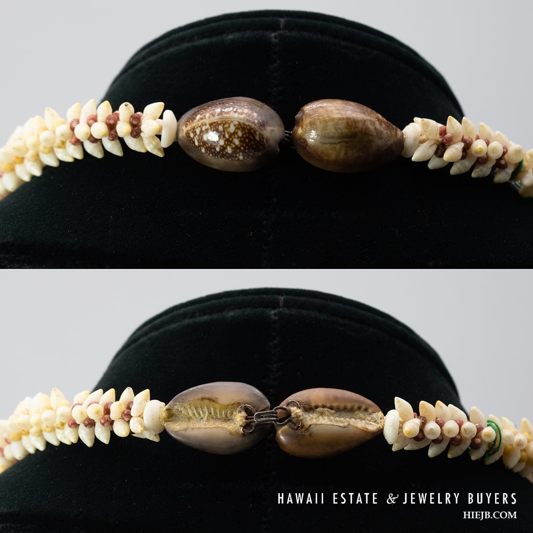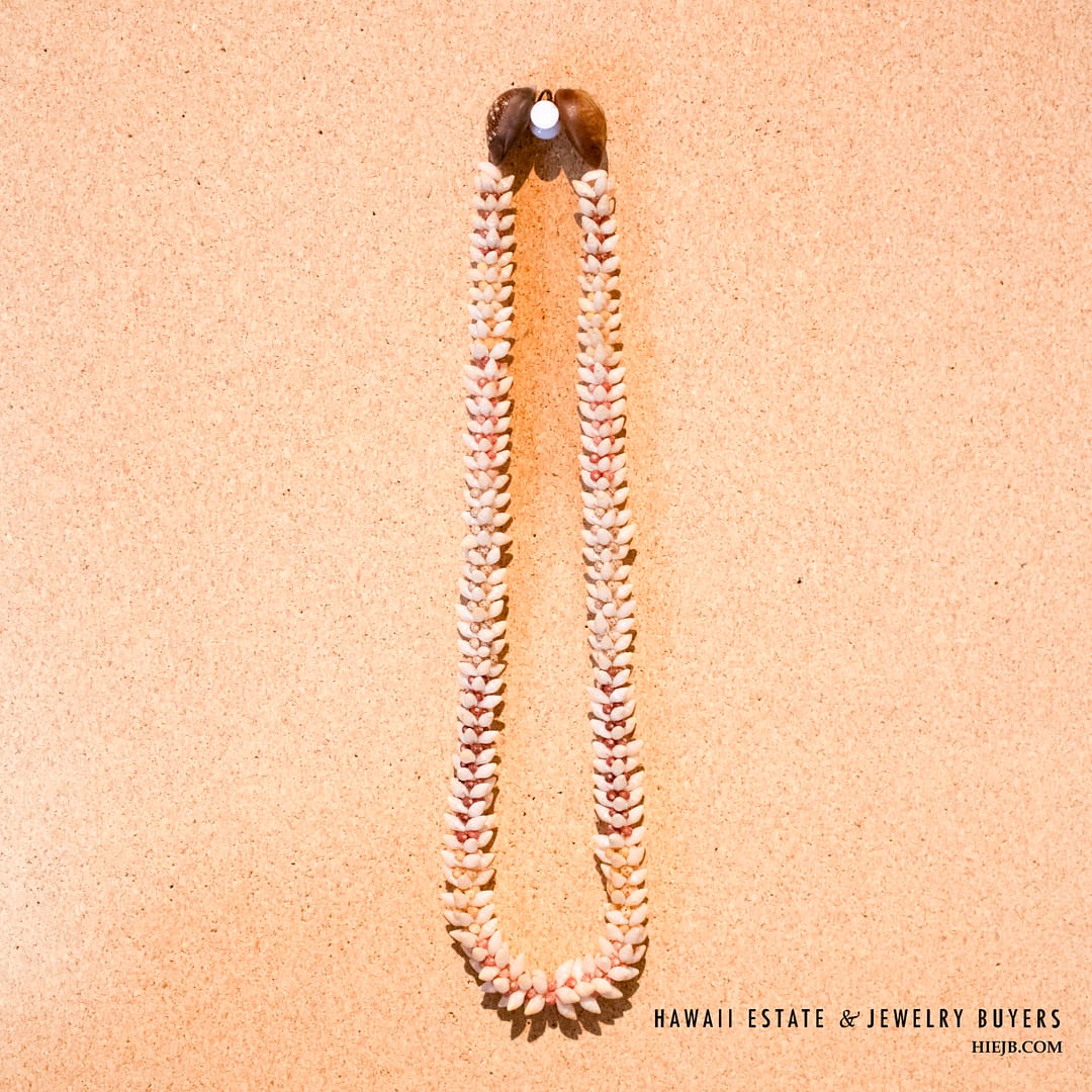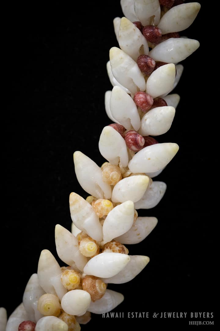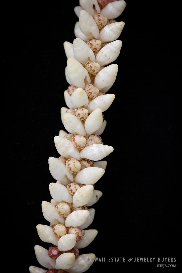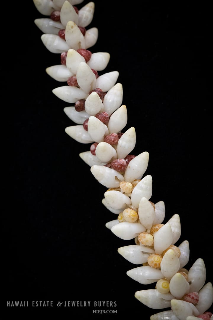 DescriptionNi’ihau shell lei is strung Torch Ginger style with Laiki ke’oke’o, Kamoa and Kahelelani akala, oma’oma’o, and ula ula.Poleho is malina with hook and eye closure.Length is 21 inches.$2,500.00NI'IHAU SHELL LEI TORCH GINGER 21 INCH quantityAdd to cartBuy withMake OfferSKU: 030923-07Category: Niihau ShellsTags: NIIHAU, NIIHAU SHELL, NIIHAU SHELL LEIRelated StylesNi’ihau Shell Choker Necklace with Rare Colors$2,000.003-Strand Ni’ihau Shell Lei: 41″ Poe’Poe Paha Momi Lenalena Kua Ele #111623-01$6,000.00Five-Strand multi-Colored Ni’ihau Shell Lei: 36 inches Maunaloa Kahelelani.$8,750.00Three-Strand Ni’ihau Shell Lei and Earrings Set: Roselani 36 inches #HC070122-06$8,000.00
