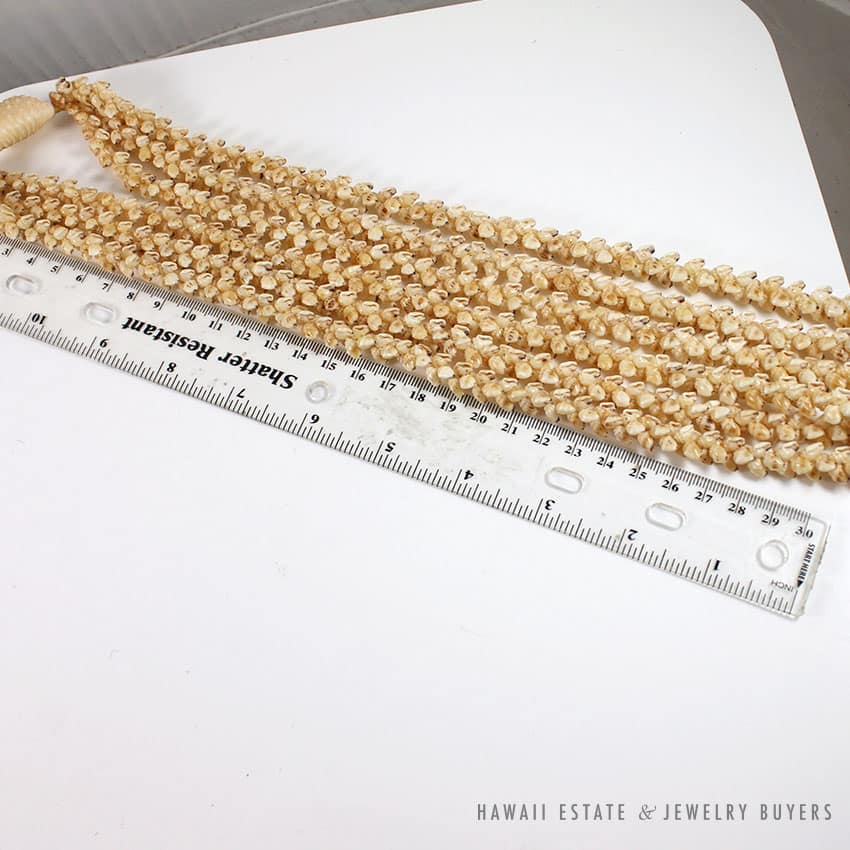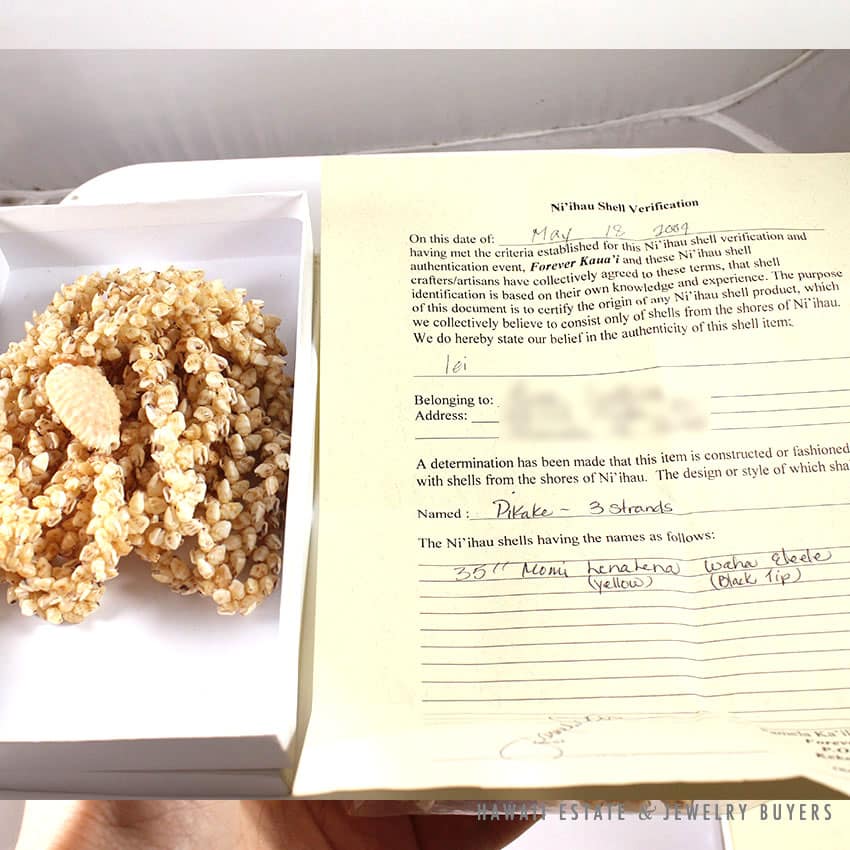 DescriptionType: PIKAKE – 3 STRANDSLength: APPROX. 18CM LAID FLATSKU: 041317-08 $3,000.00Out of stockSKU: 041317-08Category: Pre-owned Vintage JewelryTags: LEI, NIIHAU, NIIHAU SHELL, NIIHAU SHELL LEI, SHELLRelated StylesCertified Grade A Natural Jade Cabochon Ring$5,800.00Certified Jade White Carved Bangle Bracelet$5,300.0022.8g 18KWG TYPE A IMPERIAL JADE BUDDAH HAND CARVING w/2.50ctw DIAMOND PENDANT MEASURES 58x28mm (1395-01)$13,900.001.30ct Pear Shaped Diamond and Emerald Twin Antique Platinum Ring$20,000.00