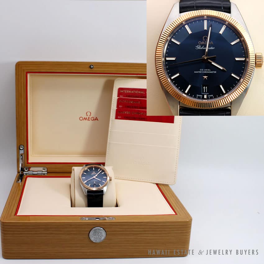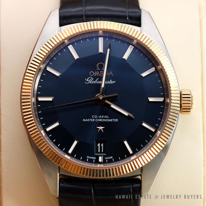 Strap is Omega 20mm black alligator with Omega deployant stainless steel buckle