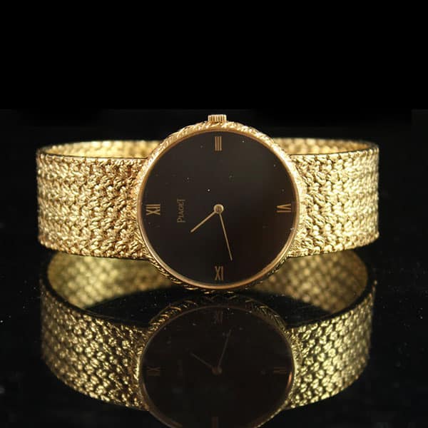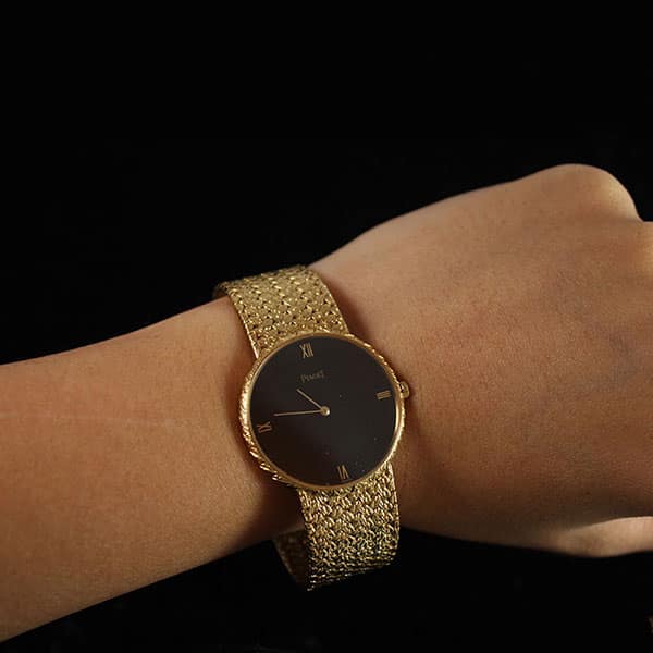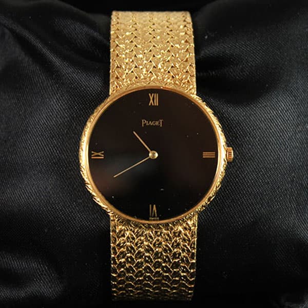 DescriptionBrand: PiagetModel# 8065 D 02Movement: QuartzLength: approx. 6 1/2″ inchesCase Size: approx 31mm diameter roundComes with original Piaget boxSKU: 1606-07SOLD$3,750.00Out of stockSKU: 1606-07Category: Pre-owned Luxury WatchesRelated StylesVINTAGE AUDEMARS PIGUET GENEVE 18K YELLOW GOLD AUTOMATIC GENTS STRAP WATCH$7,500.00BLVGARI WATCH WITH HANDWRITTEN LETTER BY DORIS DUKE to LON BENTLEY W/ ENGRAVING$11,000.00TIFFANY & CO. AUTHENTIC DIAMOND ATLAS DOME STAINLESS STEEL WATCH$1,650.00PANERAI RADIOMIR LIMITED EDITION (250*) 10 DAYS GMT WHITE GOLD WATCH PAM 235$22,000.00