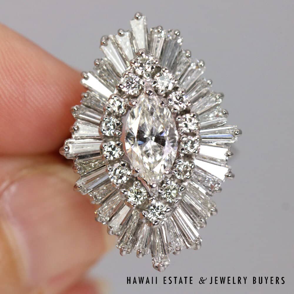 10.5g PLAT 3.25ctw MARQUISE DIAMOND BALLERINA RING SIZE 4.5 (DH0224-01)