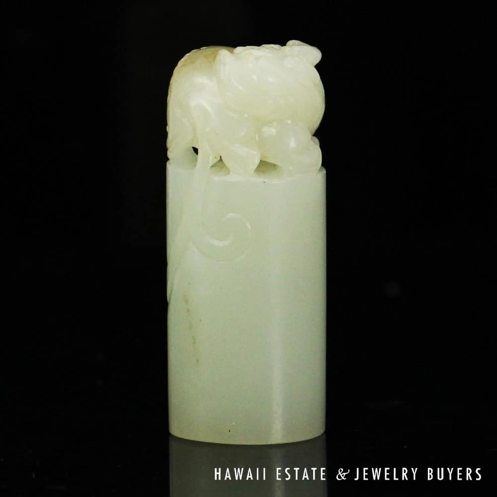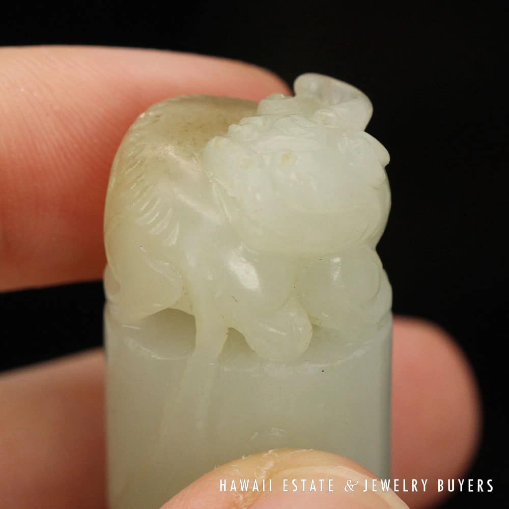 27.14g QING ERA MYTHICAL CREATURE MUTTON FAT JADE SEAL (110524-11)
