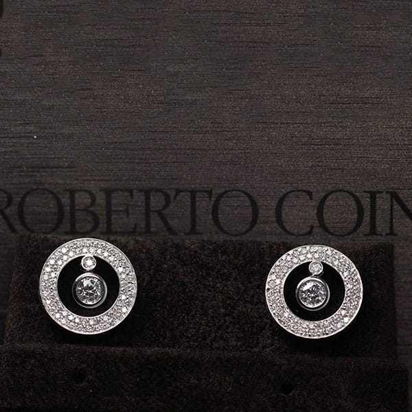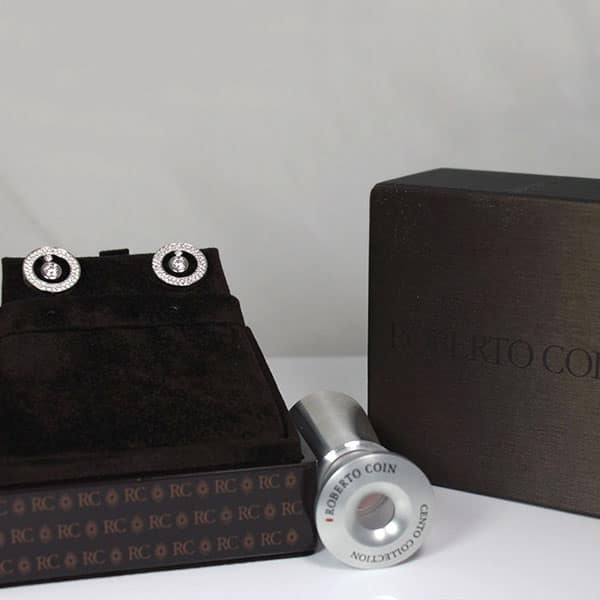DescriptionRoberto CoinCento Collection18K White GoldEach side is 0.23ct, F color, VS2 with a total carat of 1.04ctw.Piece comes with the original box and special Roberto Coin Cento scope.SKU: RC-05$16,000.001 in stockRoberto Coin Baby O Earrings quantityAdd to cartBuy withMake OfferSKU: RC-05Category: Pre-owned Designer JewelryRelated StylesMIKIMOTO 2.23CTW DIAMOND & PEARL 14K WHITE GOLD ELEGANT SWIRL BROOCH PIN W/ GEMOLOGIST APPRAISAL$5,600.00Tiffany & Co Angela Cummings 18K Earrings$4,500.00MIKIMOTO AAA AKOYA PEARL 4-6MM WHITE 14K YELLOW GOLD FLOWER BROOCH PIN & EARRINGS SET$2,000.00STEVEN KRETCHMER ENGAGEMENT RING ETOILE WEDDING BAND SET PLATINUM .98CTW SZ 4.25$9,500.00