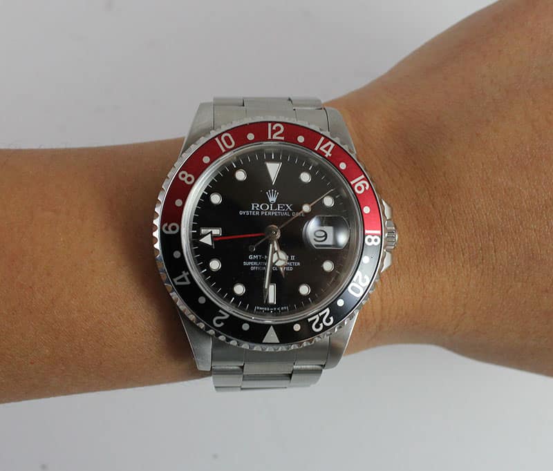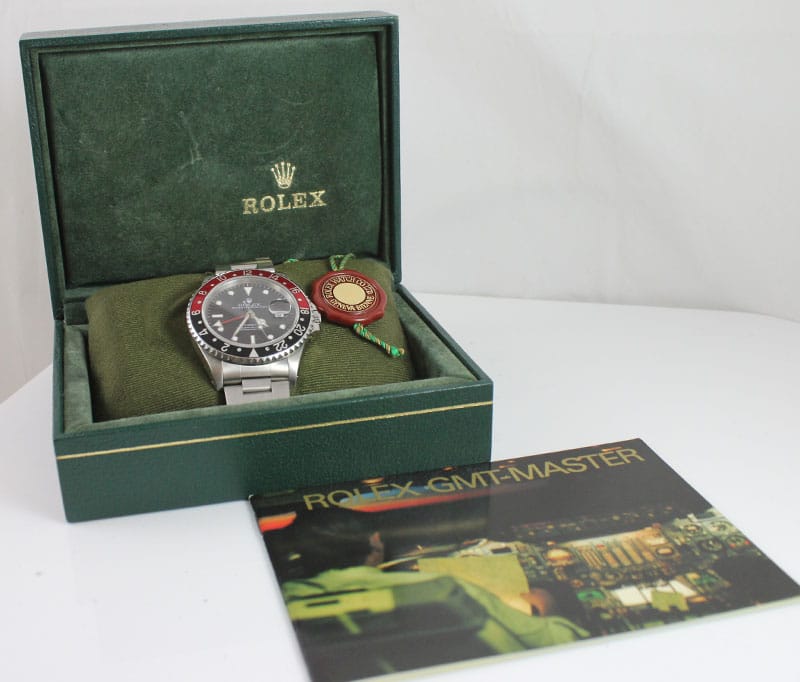 DescriptionRolex “Coca Cola” GMT MasterYear: 1997Red & Black BezelStainless SteelOyster Rolex bandSKU: 1479-01SOLD$5,300.00Out of stockSKU: 1479-01Category: Pre-owned Luxury WatchesRelated StylesRolex DateJust Salmon Mid Size Ladies$4,900.00VINTAGE AUDEMARS PIGUET GENEVE 18K YELLOW GOLD AUTOMATIC GENTS STRAP WATCH$7,500.00MINT ROLEX 1979 OYSTER PERPETUAL DATE 1550 STAINLESS STEEL GOLD PLATED WATCH$6,800.00ROLEX DATEJUST REF 179179 DIAMOND MARKERS 18KW MOP AUTOMATIC JUBILEE BRACELET$14,900.00
