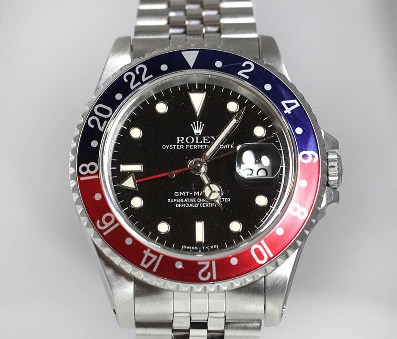 DescriptionRolex “Pepsi” GMT MasterYear: 1991Red & Blue BezelStainless SteelJubilee Rolex bandSKU: 1460-J1 SOLD$4,900.00Out of stockSKU: 1460-J1Category: Pre-owned Luxury WatchesRelated StylesANTIQUE HUNTER’S CASE AMERICAN WALTHAM POCKET WATCH & GOLD SLIDE-PENDANT CHAIN$5,300.00CARTIER TANK FRANCAISE SMALL 18K YELLOW GOLD LADIES WATCH$19,600.00BREGUET QUEEN OF NAPLES MOTHER OF PEARL REF 8967 SS OVAL ALLIGATOR STRAP 44MM STRAP WATCH$9,000.001930’s ANTIQUE ART DECO DIAMOND BAGUETTE WRIST WATCH WORKING CONDITION$3,692.00