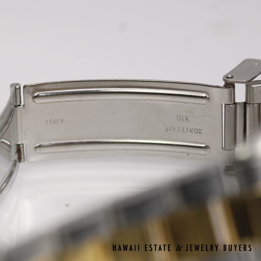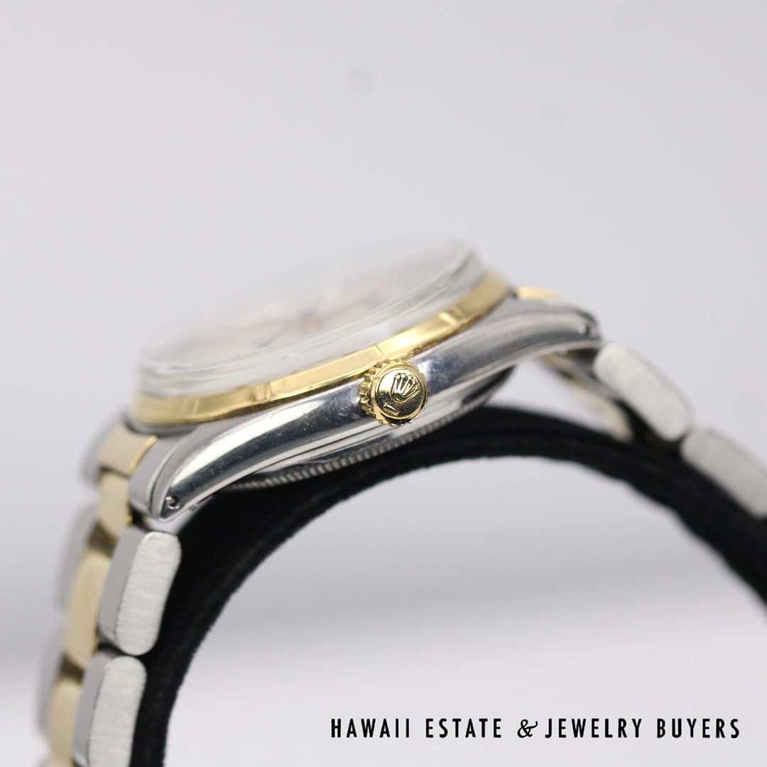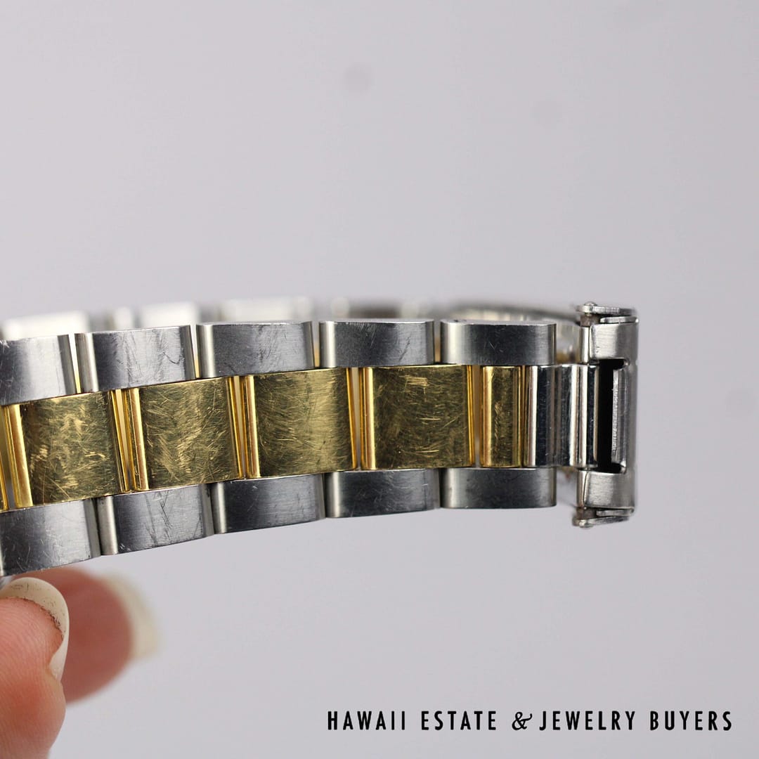 DescriptionNote: Band is a replacement and is NOT Rolex.Case has an engraving on the back as shown. ROLEX OYSTER PERPETUAL TWO TONE 33MM REF 6565 CIRCA 1958 (PC050621-63)$3,500.001 in stockRolex Oyster Perpetual Two Tone 33mm Ref. 6565, circa 1958 quantityAdd to cartMake OfferSKU: PC050621-63Category: Pre-owned Luxury WatchesRelated Styles1930’s ANTIQUE ART DECO DIAMOND BAGUETTE WRIST WATCH WORKING CONDITION$3,692.00RARE ROLEX SUBMARINER 1680 BLACK NIPPLE DIAL 18K YELLOW GOLD BRACELET WATCH$79,900.00LADIES BLANCPAIN VILLERET 28MM 18K ALLIGATOR MECHANICAL SWISS WATCH w/ APPRAISAL$3,800.00HISTORIC ROLEX DIAMOND DIAL DAY-DATE PRESIDENTIAL 36mm WATCH W/ APPRAISAL$30,000.00