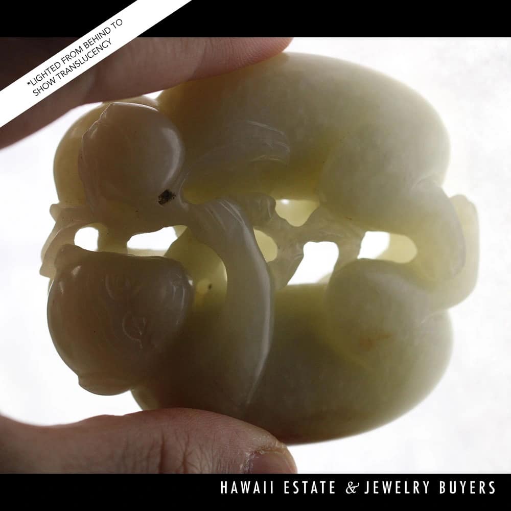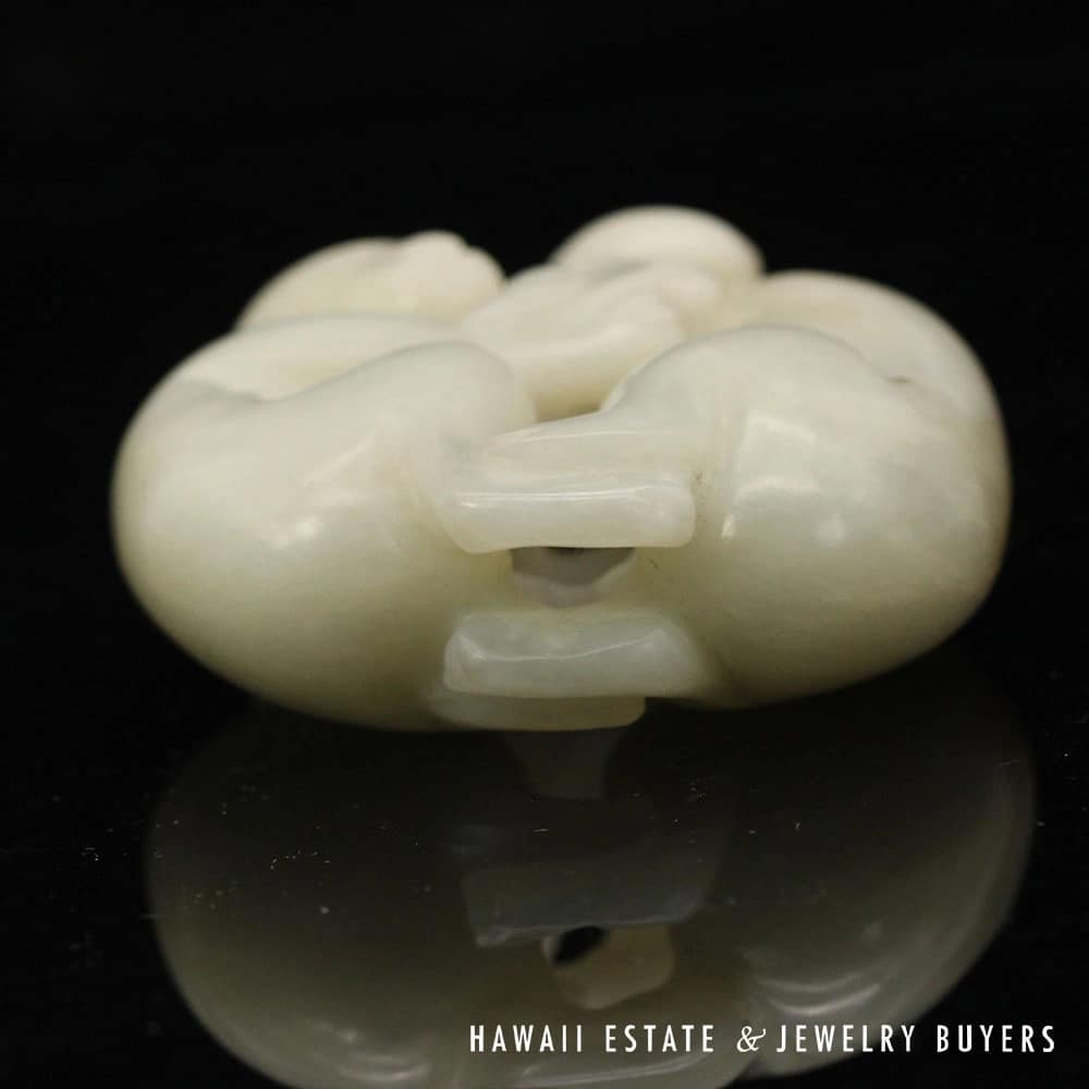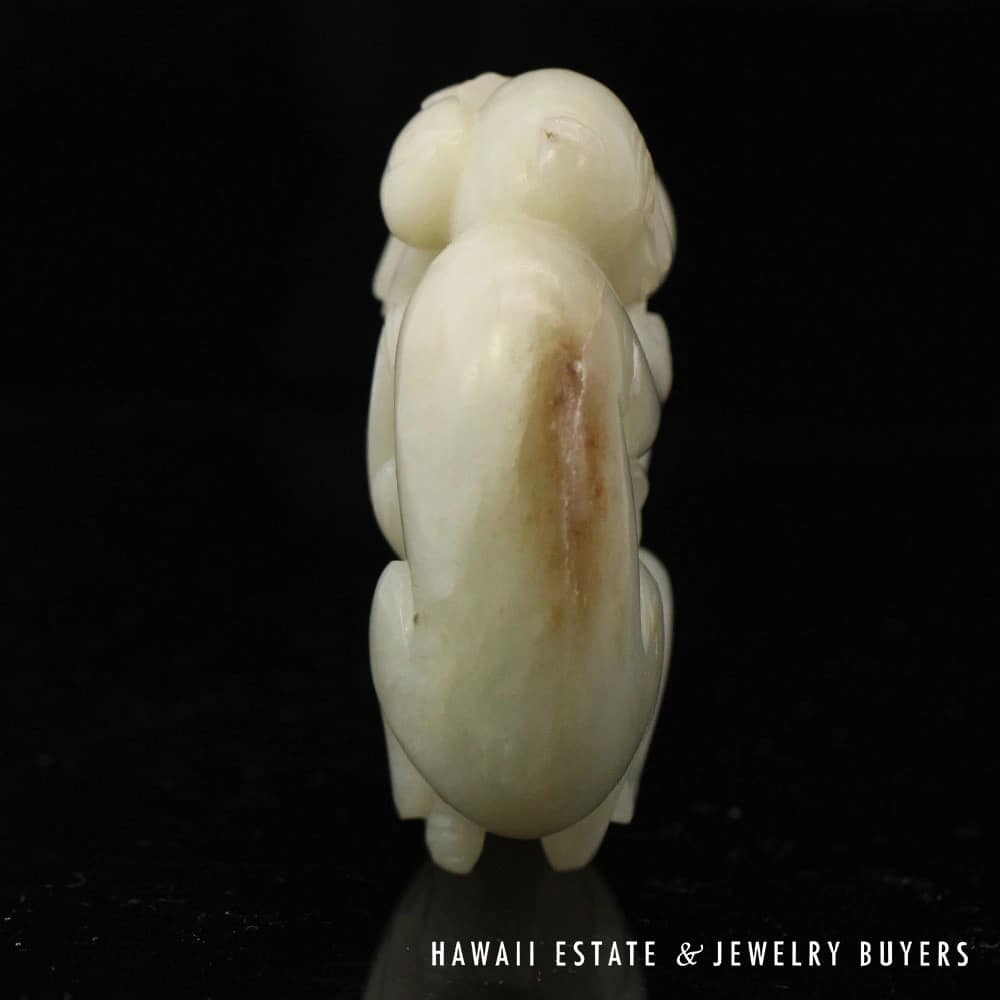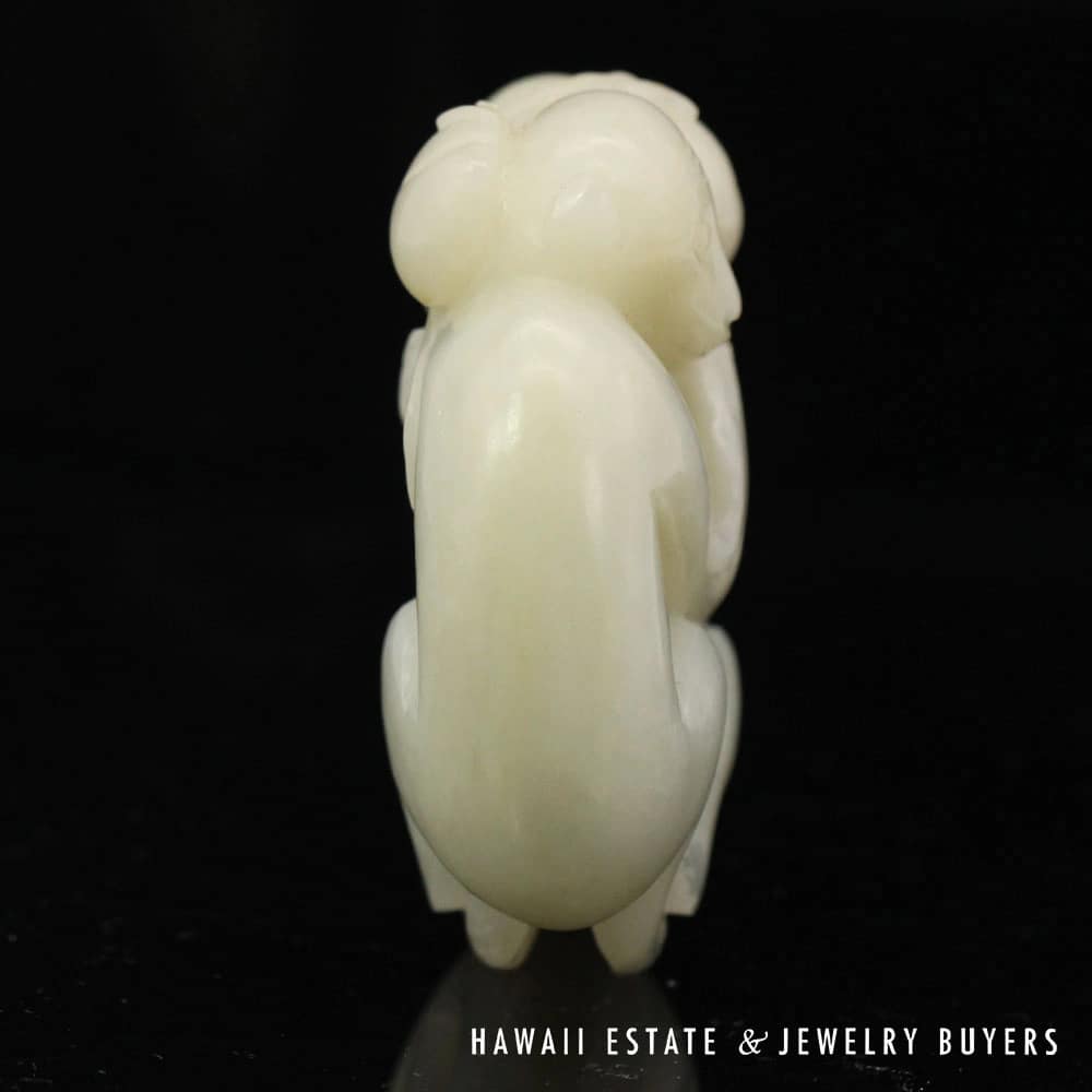 Delve into the elegance of Chinese artistry with this Antique Qing Dynasty Mutton Fat Jade Carving, featuring an endearing pair of monkeys. Crafted with meticulous detail, the jade’s natural translucence and texture provide a serene visual appeal. It’s an exquisite find for collectors and connoisseurs alike, offering a touch of historical sophistication and a whisper of the esteemed Qing Dynasty’s craftsmanship.