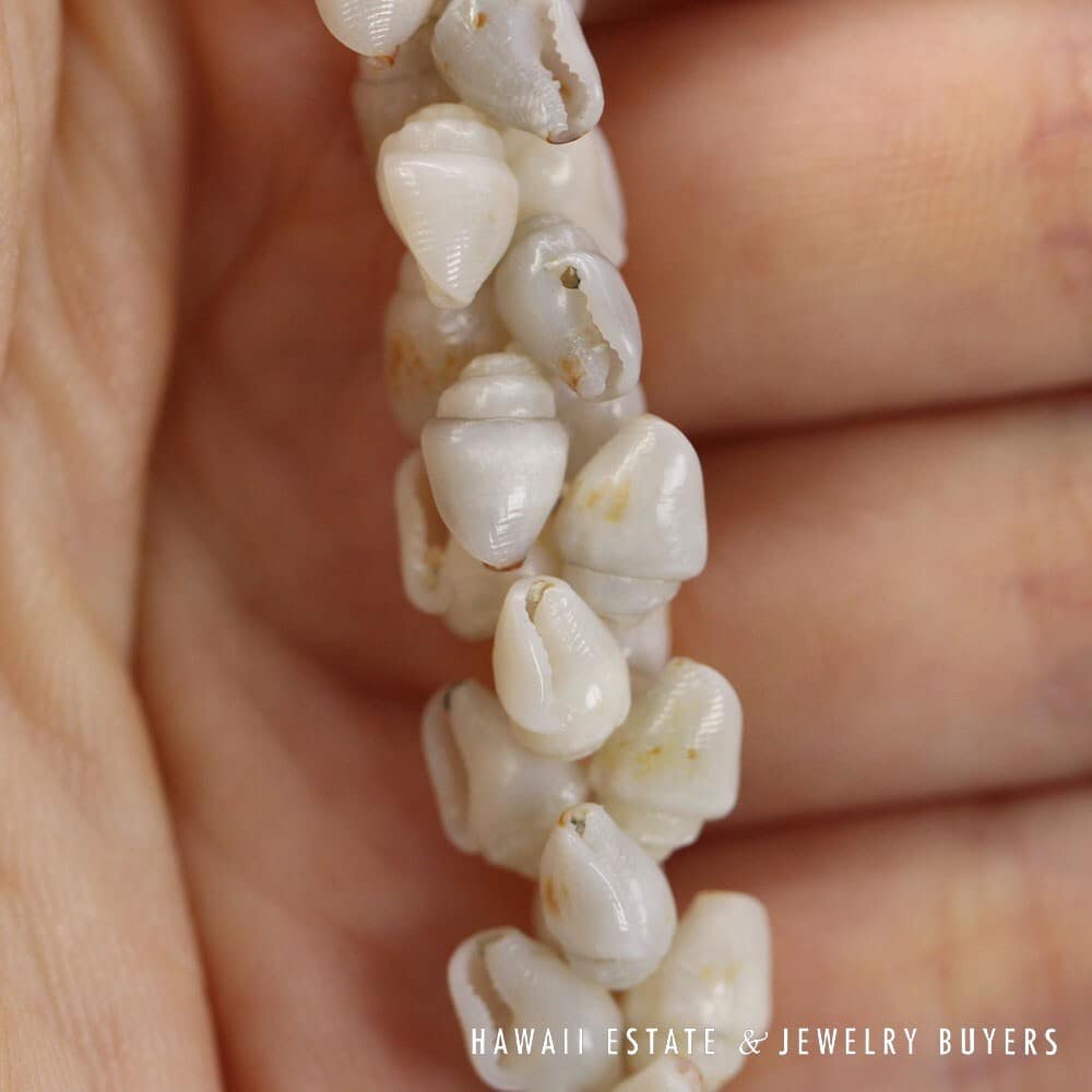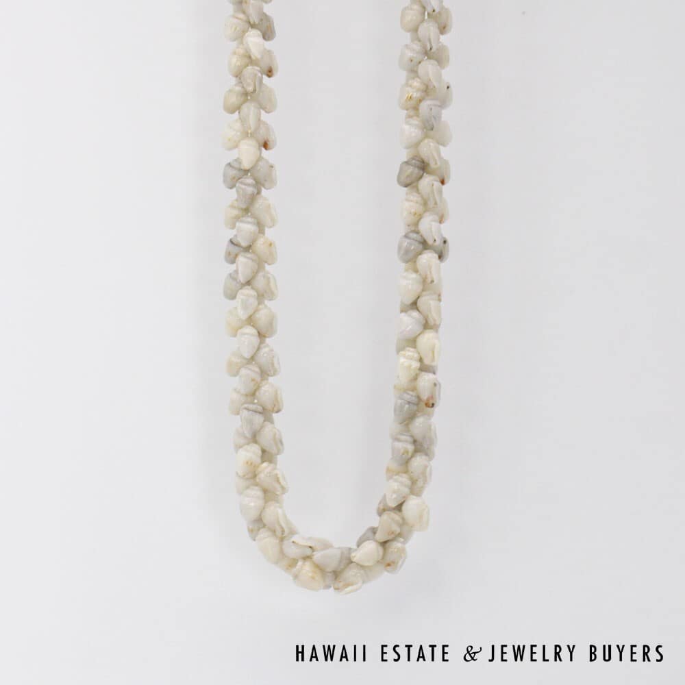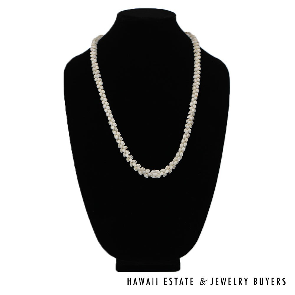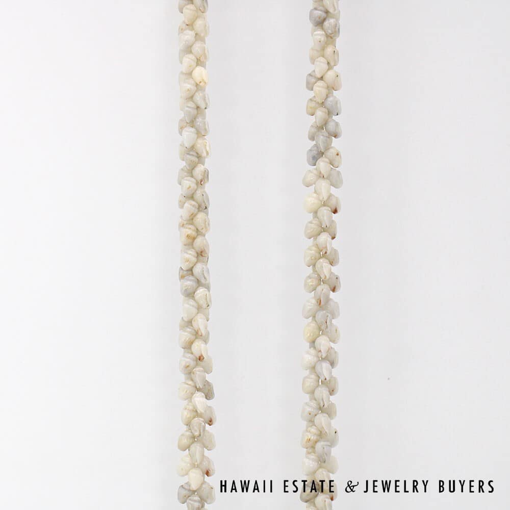 Strung in the Pikake style, each layer of shells interlaces seamlessly with the next.