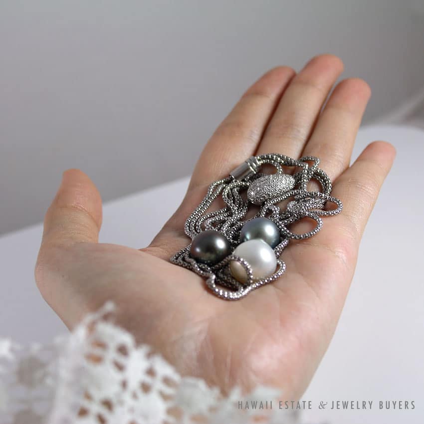 DescriptionVintage 0.79ct Burmese Ruby Diamond Ring Metal: stamped 14K White GoldCenter Stone Size: .79ct RubySide Diamonds: .23ct eachClarity: VS Color: G $2,500.001 in stockTAHITIAN PEARL & DIAMOND PAVE 18K WHITE GOLD BOLERO NECKLACE quantityAdd to cartBuy withMake OfferSKU: 1637-03Category: Pre-owned Vintage JewelryTag: pearlRelated StylesCarved Pierced Bamboo Motif Jade 18K Yellow Gold Cufflinks$1,500.00Certified White Nephrite Jade Pendant with Multicolored Stones$8,700.00Estate Large 18mm South Sea Pearl Necklace$18,000.00GIA CERTIFIED NATURAL GRADE A LAVENDER JADEITE JADE PENDANT W/ DIAMONDS$5,900.00