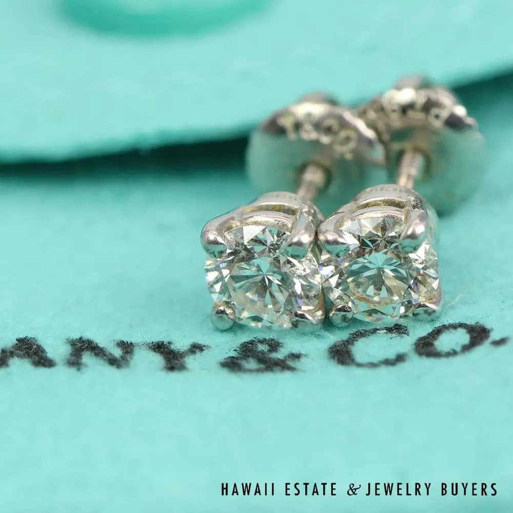 TIFFANY & CO 0.66ctw VS/GH DIAMOND PLAT SCREWBACK EARRINGS STUDS WITH POUCH