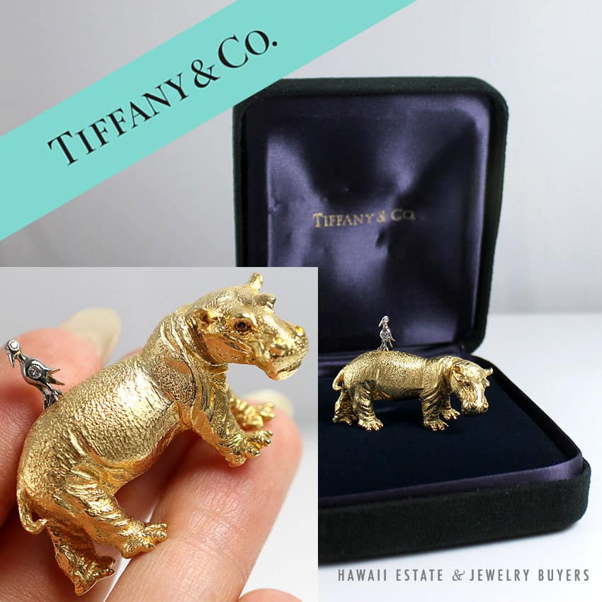 A gold and gem-set hippo brooch, by Tiffany & Co.