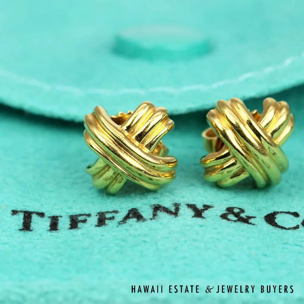 Elevate your jewelry collection with these stunning AUTHENTIC Tiffany & Co. signature X stud earrings. Made from high-quality 18k yellow gold, these earrings are signed and come with a Tiffany & Co. pouch for safekeeping.