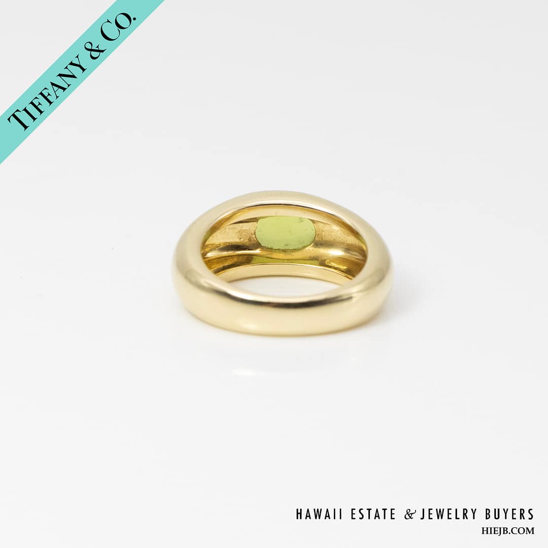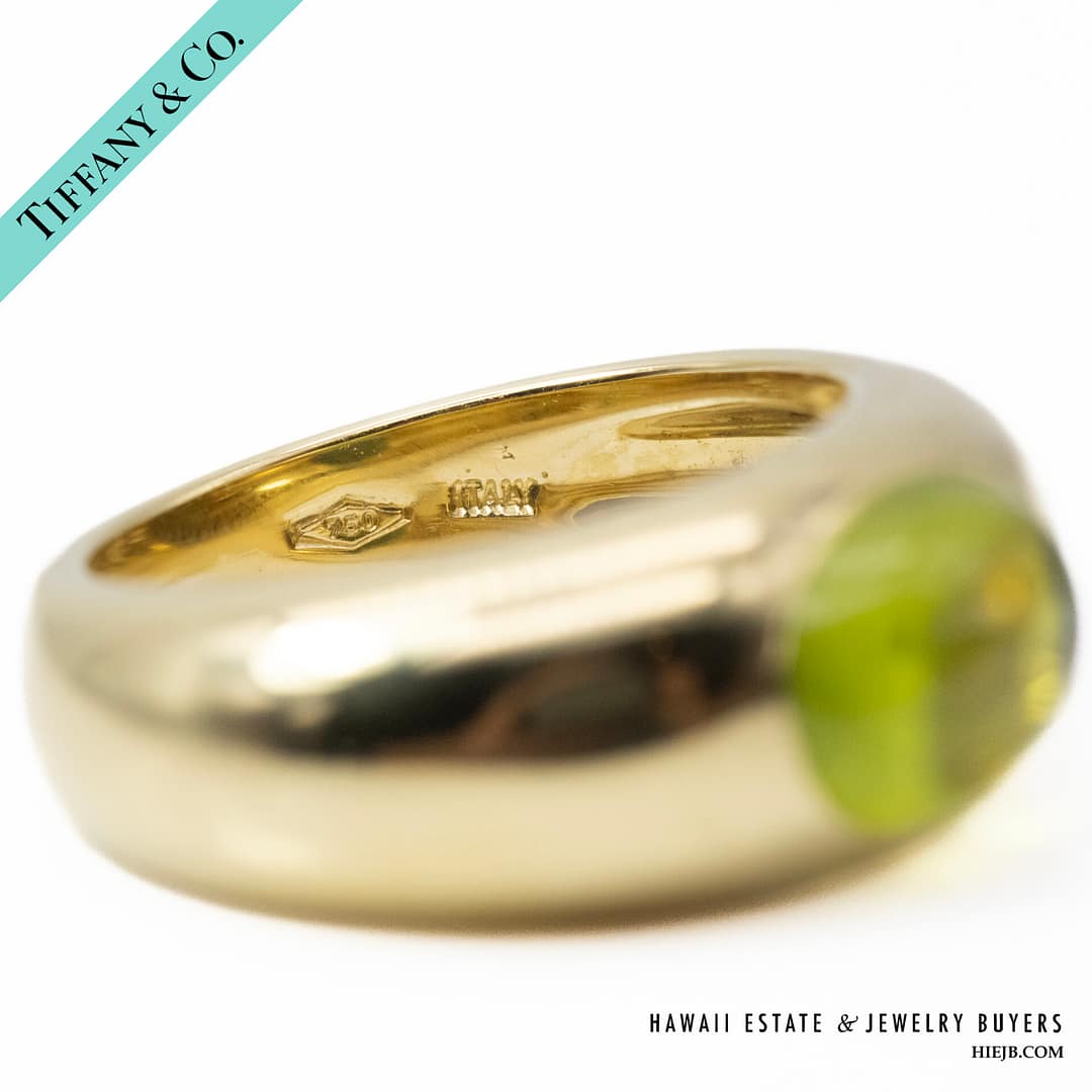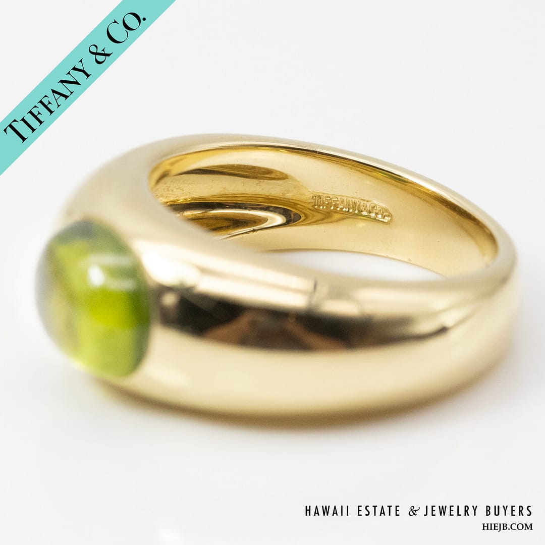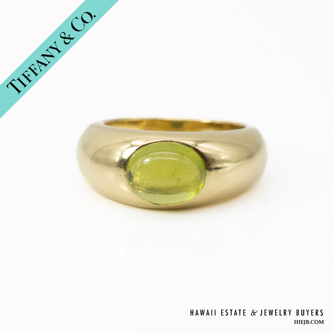 DescriptionYou’re looking at a rare TIFFANY & CO. 18KYG PERIDOT OVAL CABOCHON RING. RING WEIGHT: 8.9gRING SIZE: 5METAL: 18K Yellow GoldSTONE: PERIDOTSTONE WEIGHT: Estimated 1.86ctSTAMPED 750 ITALYSIGNED TIFFANY & CO. $1,300.00Out of stockSKU: 2610-01Category: Pre-owned Designer JewelryTags: peridot, T&Co, tiffany and coRelated StylesTIFFANY & CO. 15MM SOUTH SEA CULTURED PEARL PLATINUM ELSA PERETTI PENDANT & NECKLACE 32″ WITH FOLIO, BOX & PAPER$8,000.00Bernard K Passman Black Coral 18K White Gold Diamond Ring$1,900.00Mikimoto Pearl 14K Yellow Gold Earring Pendant Set$1,900.00STEVEN KRETCHMER ENGAGEMENT RING ETOILE WEDDING BAND SET PLATINUM .98CTW SZ 4.25$9,500.00