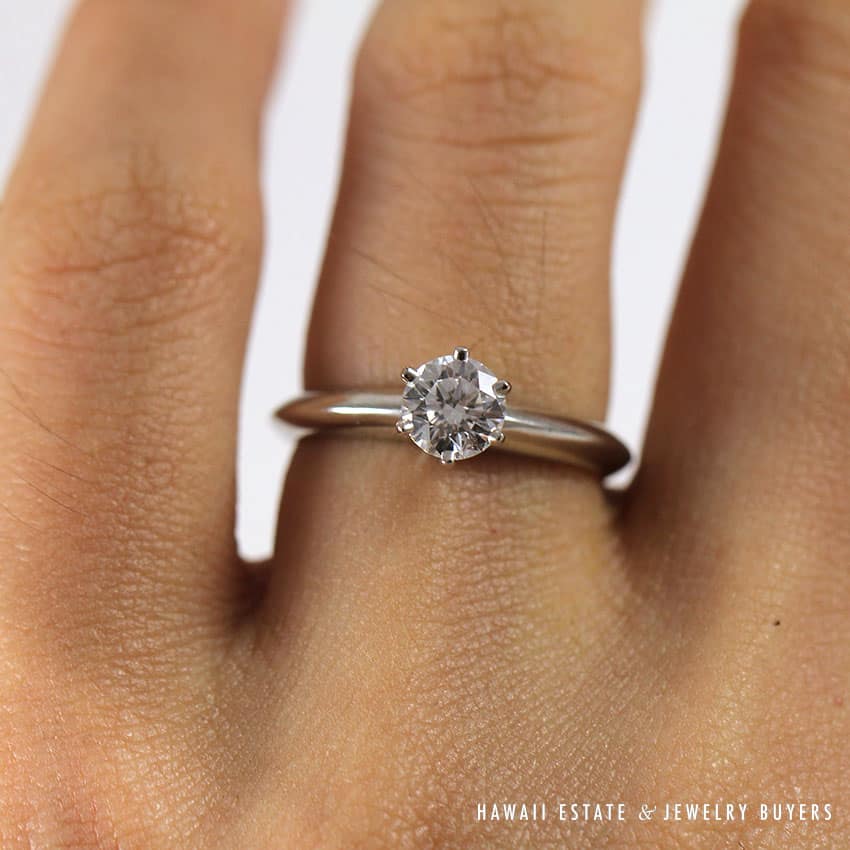 DescriptionMETAL: PLATINUMRING SIZE: 4.5Authentic Tiffany & Co Certificate and box included. $3,600.00Out of stockSKU: 1909-06Category: Pre-owned Designer JewelryTags: SOLITAIRE, tiffany, tiffany & co., TIFFANY ENGAGEMENT RINGRelated StylesWILLIAM LEVINE DESIGNER PLATINUM & ENAMEL DIAMOND FLORAL PENDANT & EARRING SET$9,500.00Michael B. Platinum Eternity Band$1,600.00VINTAGE MIKIMOTO AAA AKOYA PEARL 14K BROOCH & SCREW BACK EARRINGS SET$4,000.00TIFFANY & CO. NATURAL GIA BLUE SAPPHIRE & .77CTW DIAMOND PLATINUM RING W/ PAPERS SIZE 6$10,000.00