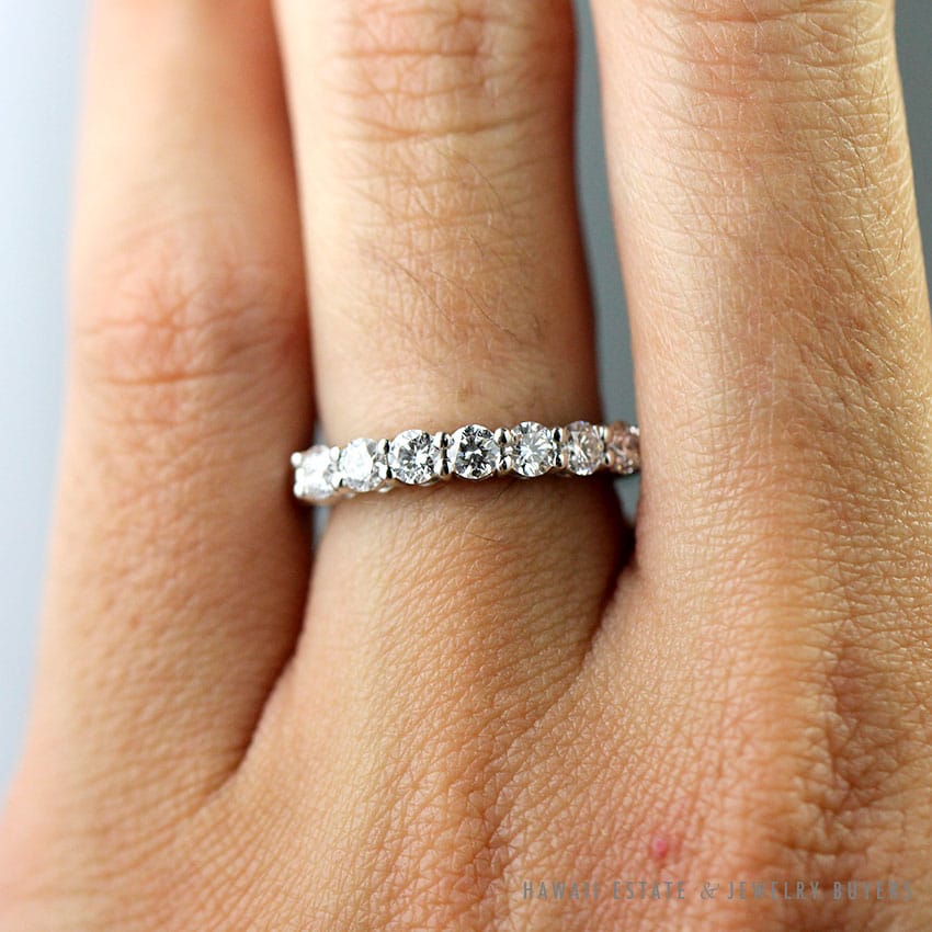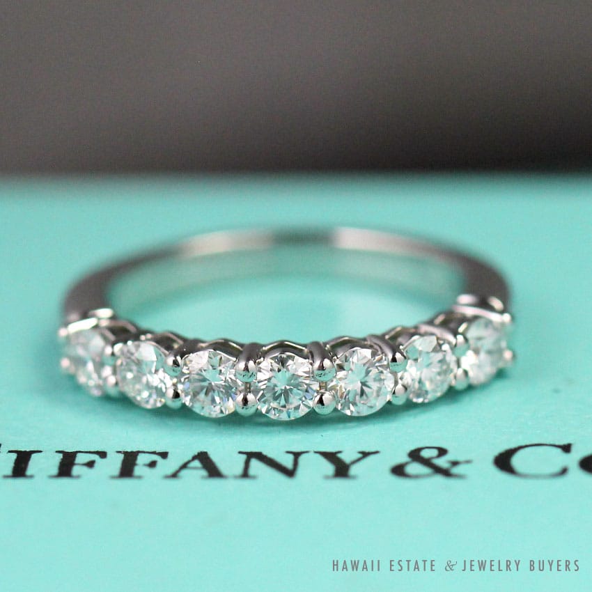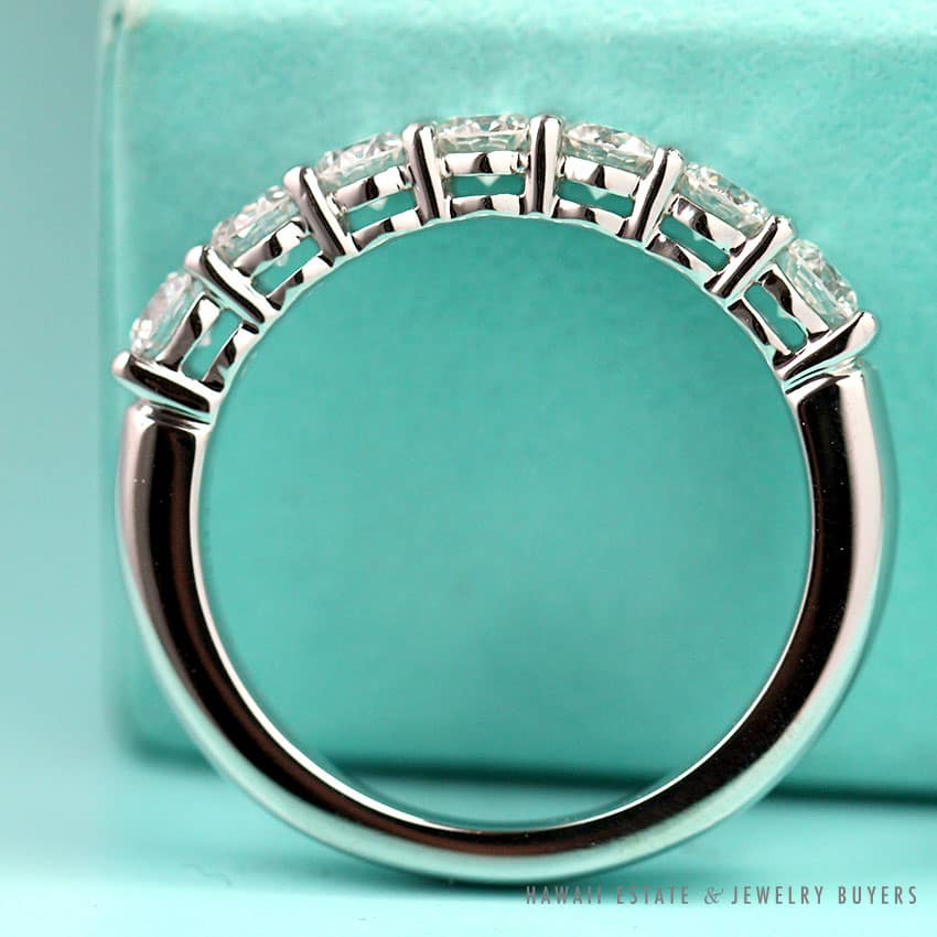 DescriptionMeasures 3mm wide, 7 diamonds approx 0.57CTW, F color, VS1 clarityESTIMATED RETAIL REPLACEMENT VALUE: $5,225 US $3,500.00Out of stockSKU: TC100-02Category: Pre-owned Designer JewelryRelated StylesMichael B. Platinum Eternity Band$1,600.00Michael B. Burmese Ruby Diamond Ring$6,500.00TIFFANY & CO. 15MM SOUTH SEA CULTURED PEARL PLATINUM ELSA PERETTI PENDANT & NECKLACE 32″ WITH FOLIO, BOX & PAPER$8,000.00Oscar Heyman Emerald & Diamond Three Stone Platinum Ring$12,750.00