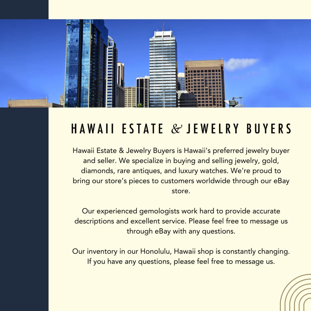About Us: With over 21 years of experience Hawaii Estate & Jewelry Buyers is Hawaii's top rated jewelry buyers and sellers. We are proud to present our Honolulu store's items to the world through our highly-rated eBay shop.