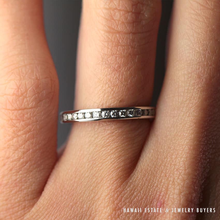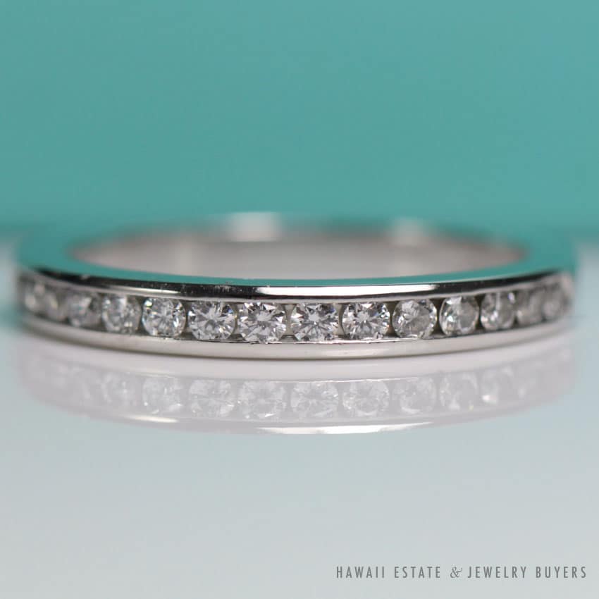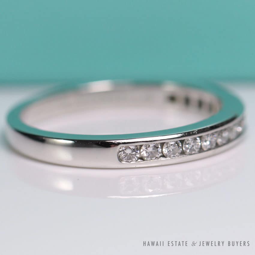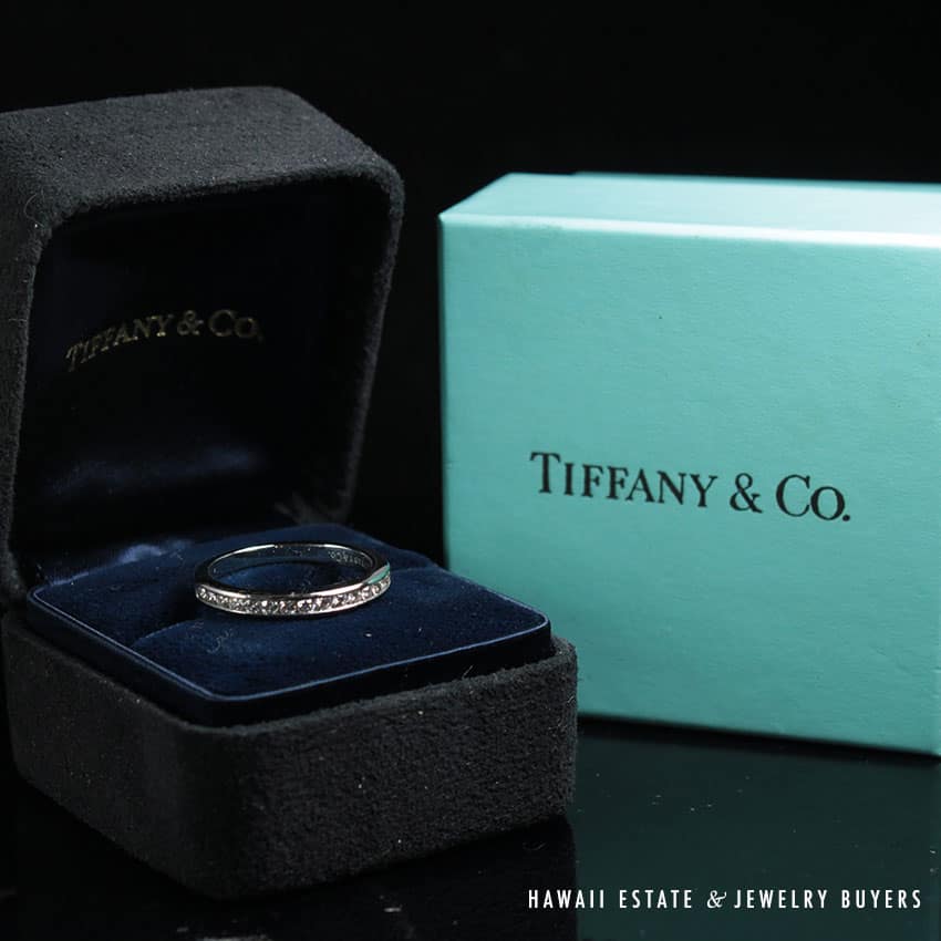 DescriptionSigned, authentic (with original box)Metal: Platinum PT950Size: 5.5SKU: 1767-04 $1,800.001 in stockTiffany & Co Platinum Diamond Eternity Band quantityAdd to cartMake OfferSKU: 1767-04Category: Pre-owned Designer JewelryRelated StylesGIA 0.57 ROUND BRILLIANT TACORI DANTELA 18K WHITE GOLD ENGAGEMENT RING – E VVS1$5,600.00Michael B. Burmese Ruby Diamond Ring$6,500.00MIKIMOTO 2.23CTW DIAMOND & PEARL 14K WHITE GOLD ELEGANT SWIRL BROOCH PIN W/ GEMOLOGIST APPRAISAL$5,600.00Cartier Diamond Trinity Ring (SZ 57/US 8 )$14,500.00