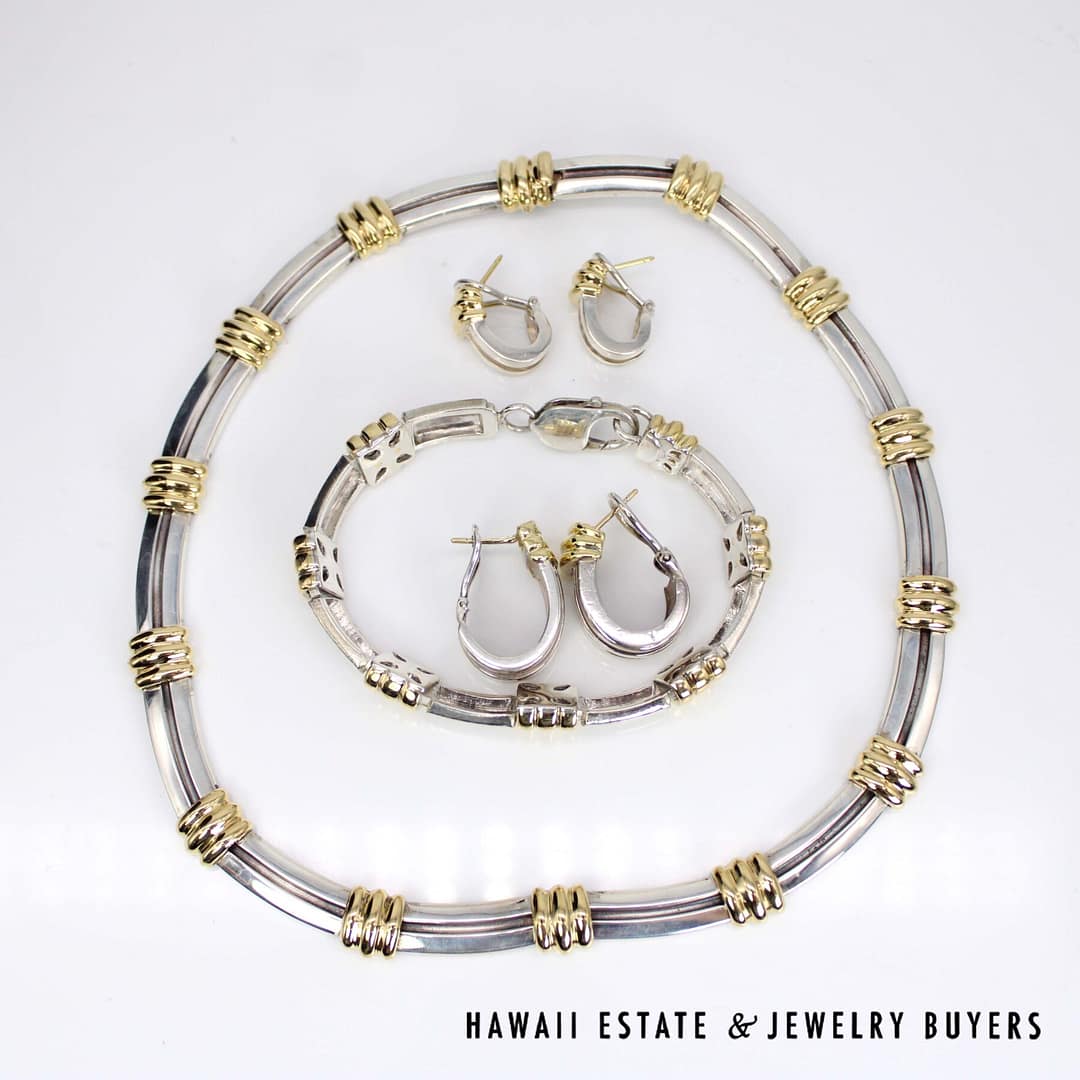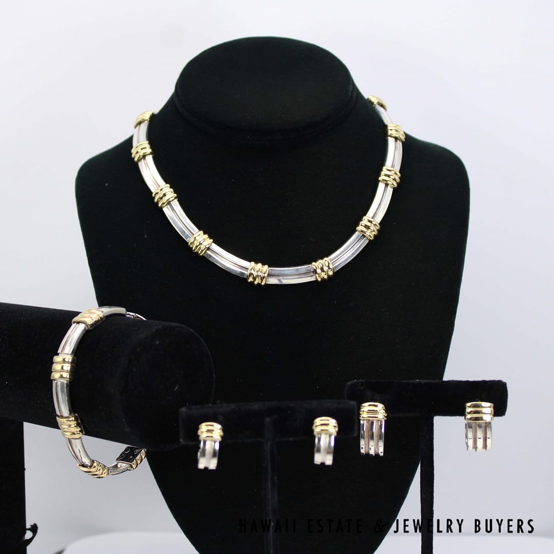 TIFFANY & CO SS & 18KYG ATLAS SET NK, BR, 2 ER (2853-03)