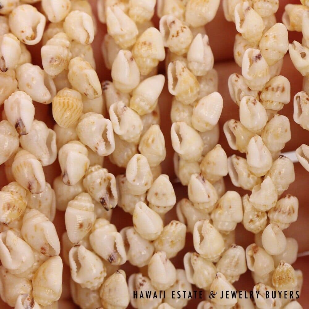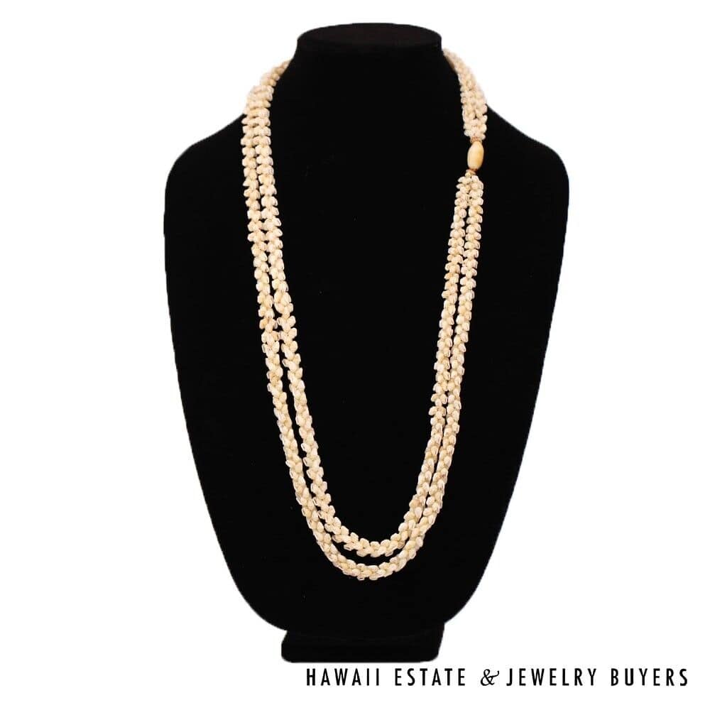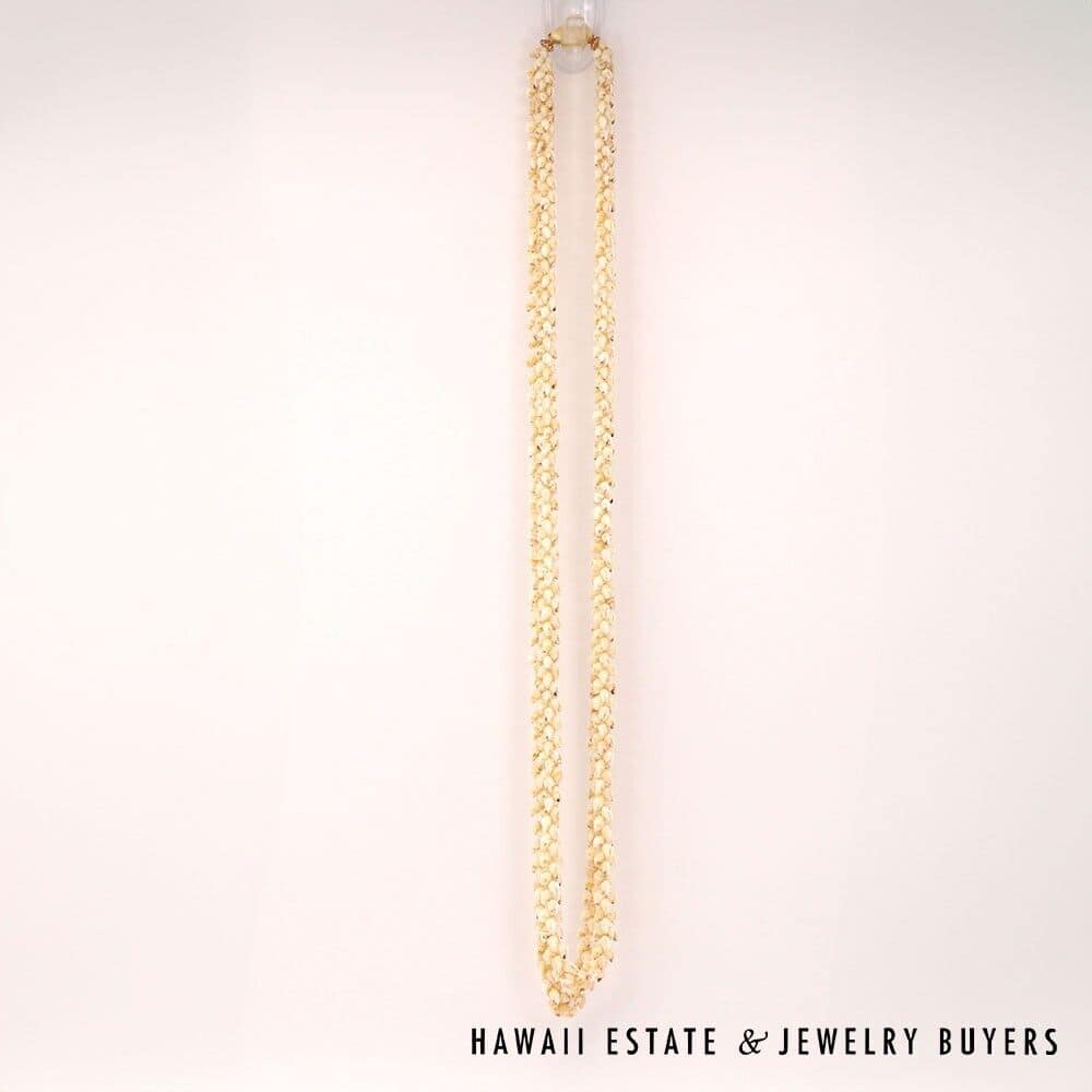 Strung in the Pikake style, each layer of shells interlaces seamlessly with the next.