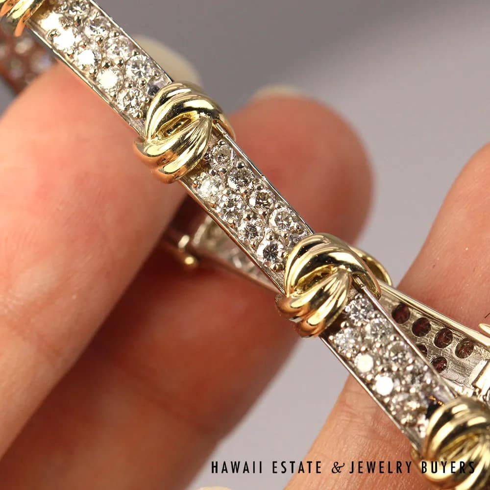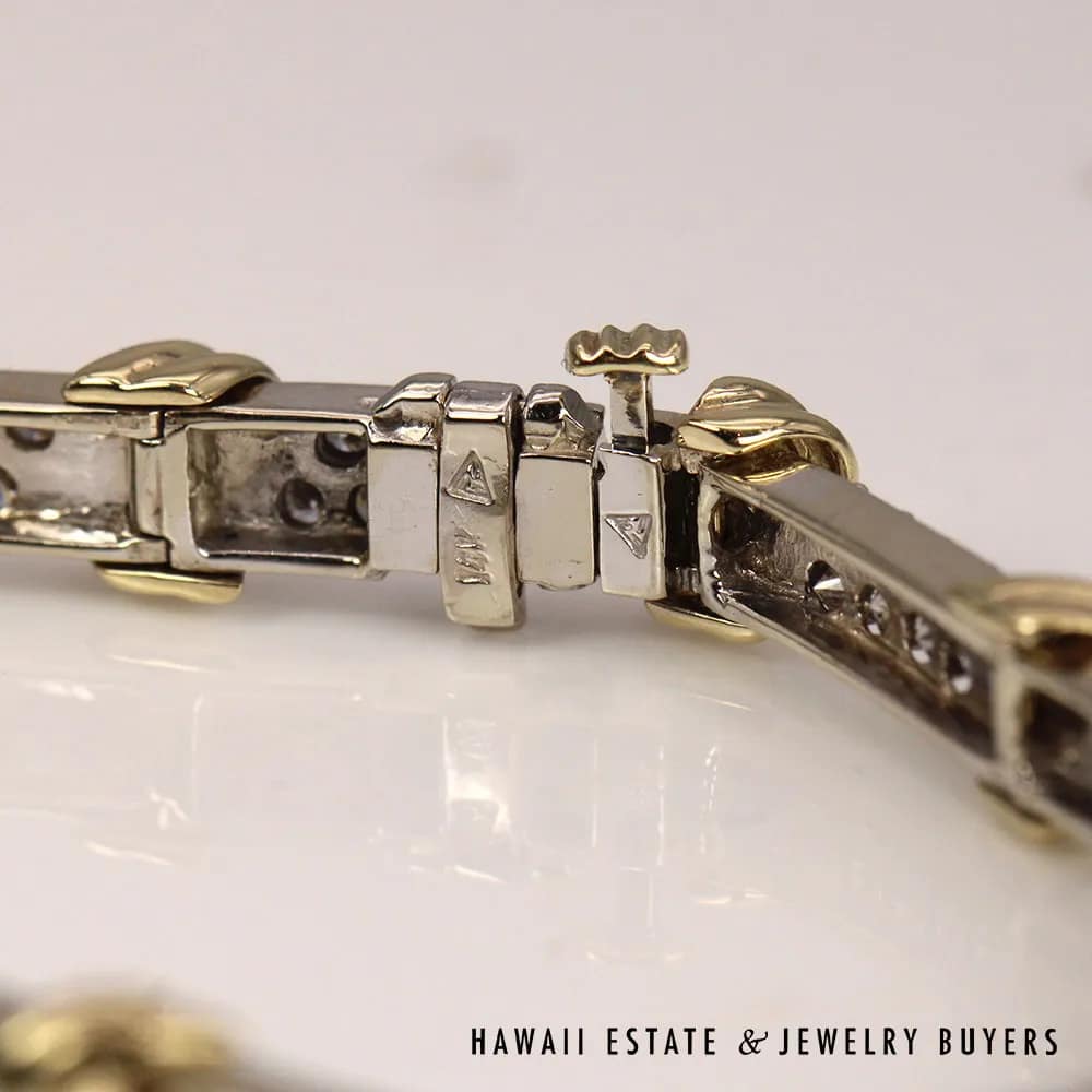 Home » Shop » TWO TONE 3CTW 17.5g 14K TWO TONE DIAMOND BRACELET SIZE 6.75