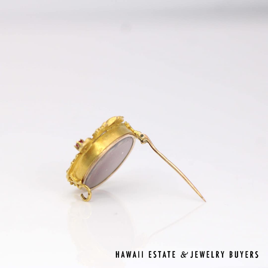 ANTIQUE 6.9g 14KYG VICTORIAN HAIR LOCKET with RUBY CAB (2641-02