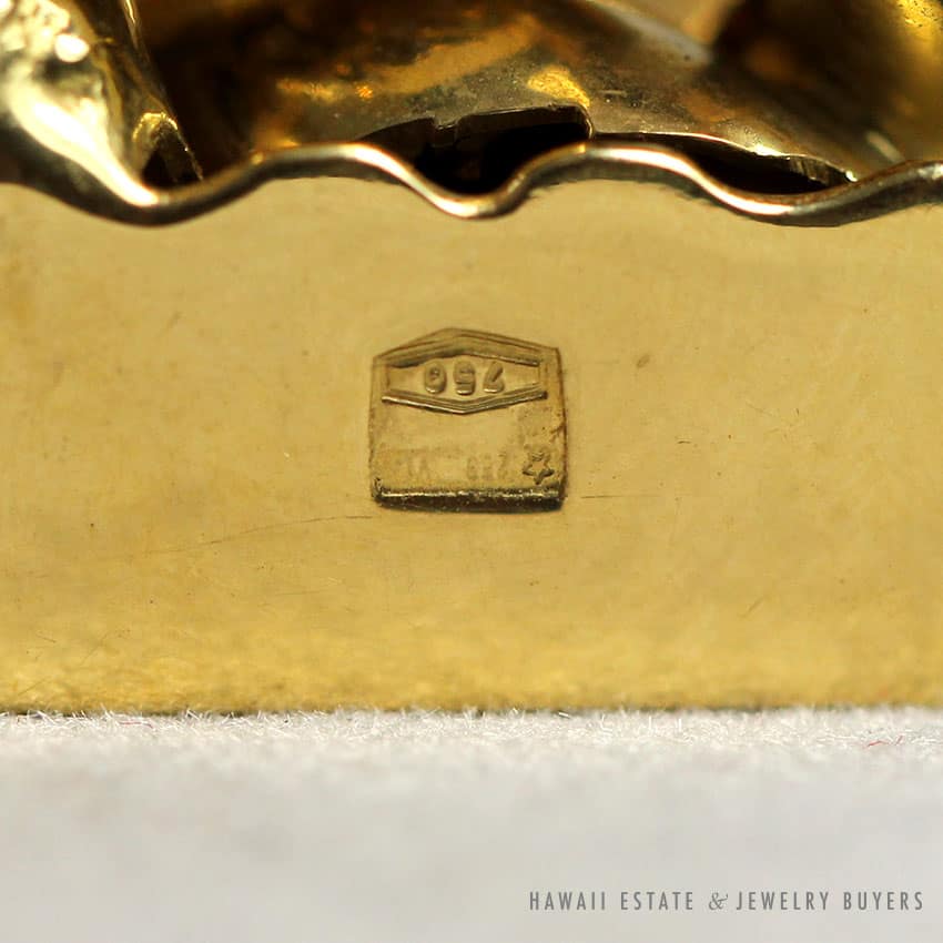 DescriptionSTAMPED 750; ITEM IS HOLLOW$7,800.00Out of stockSKU: CW111418-09Category: Pre-owned Vintage JewelryRelated StylesVintage Fire Opal & Diamond 18K Ring$7,000.00Estate Large 18mm South Sea Pearl Necklace$18,000.00Natural Grade A Jade Cabochon Ring$8,500.00Certified Nephrite Jade White Hollow Cylinder$3,700.00