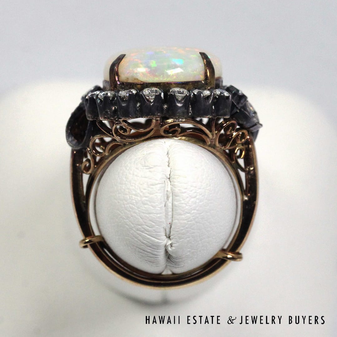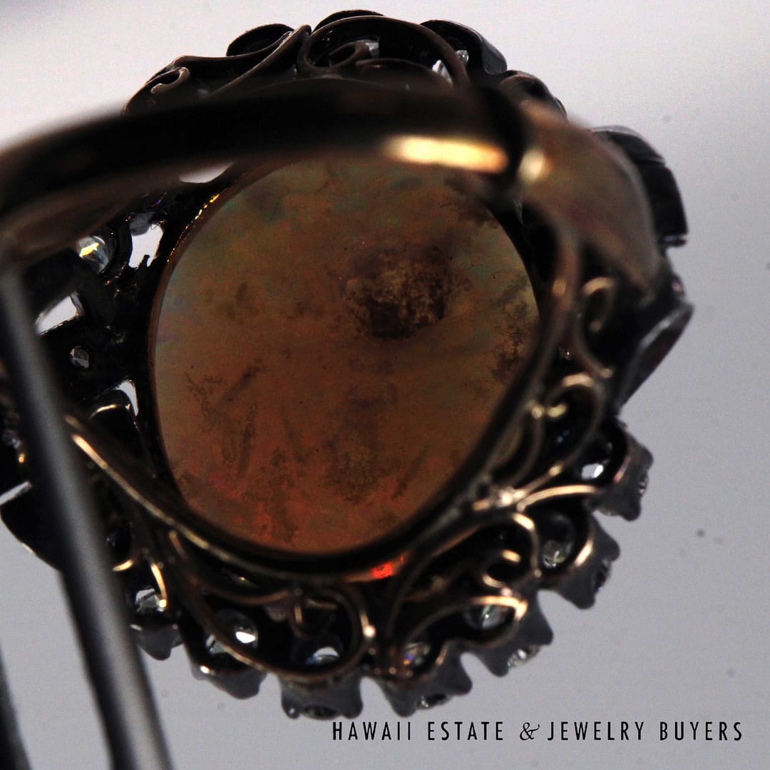 VINTAGE 6.5g 12K & STERLING SILVER 5ct OPAL 0.70ctw DIAMOND RING SIZE 4 (3144-14)