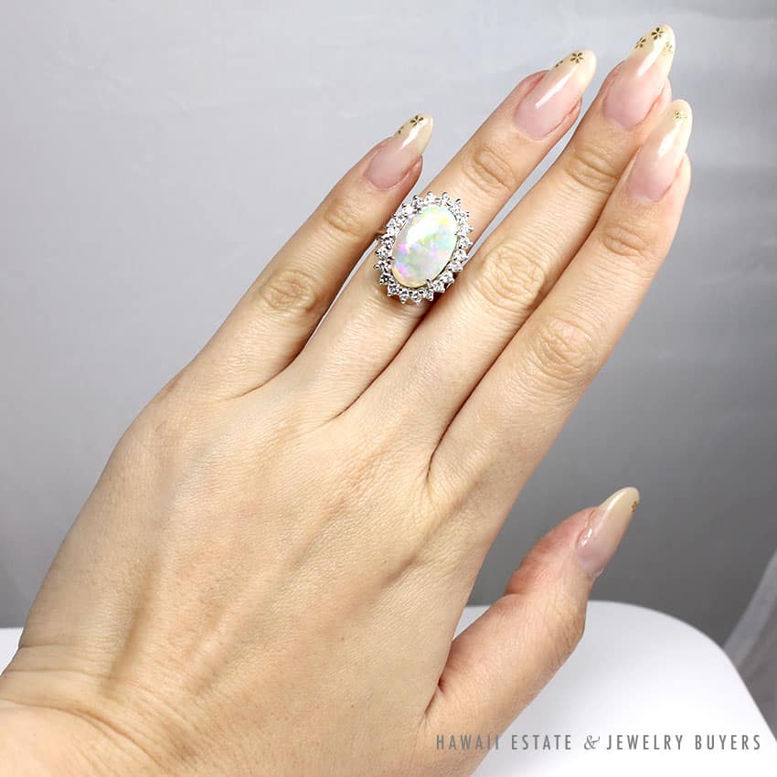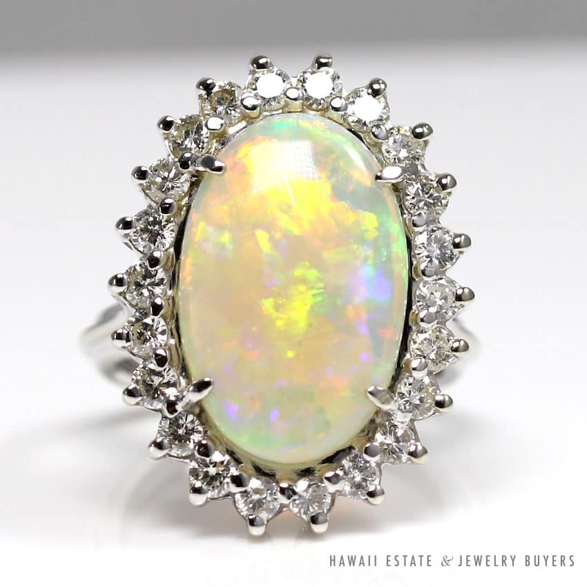 DescriptionBeautiful iridescent 8CT Natural White Opal. EXCELLENT CONDITION, no cracks!1.50CTW F-VS Round Diamond HaloSTAMPED: 14KRecently professionally polished$1,800.00Out of stockSKU: 2337-08Category: Pre-owned Vintage JewelryRelated StylesNatural Grade A White Jade Archer Ring$3,800.00Certified Nephrite Jade White Hollow Cylinder$3,700.00Natural GIA Certified Ruby Diamond Ring$6,800.00Natural Grade A Jade Cabochon Ring$8,500.00