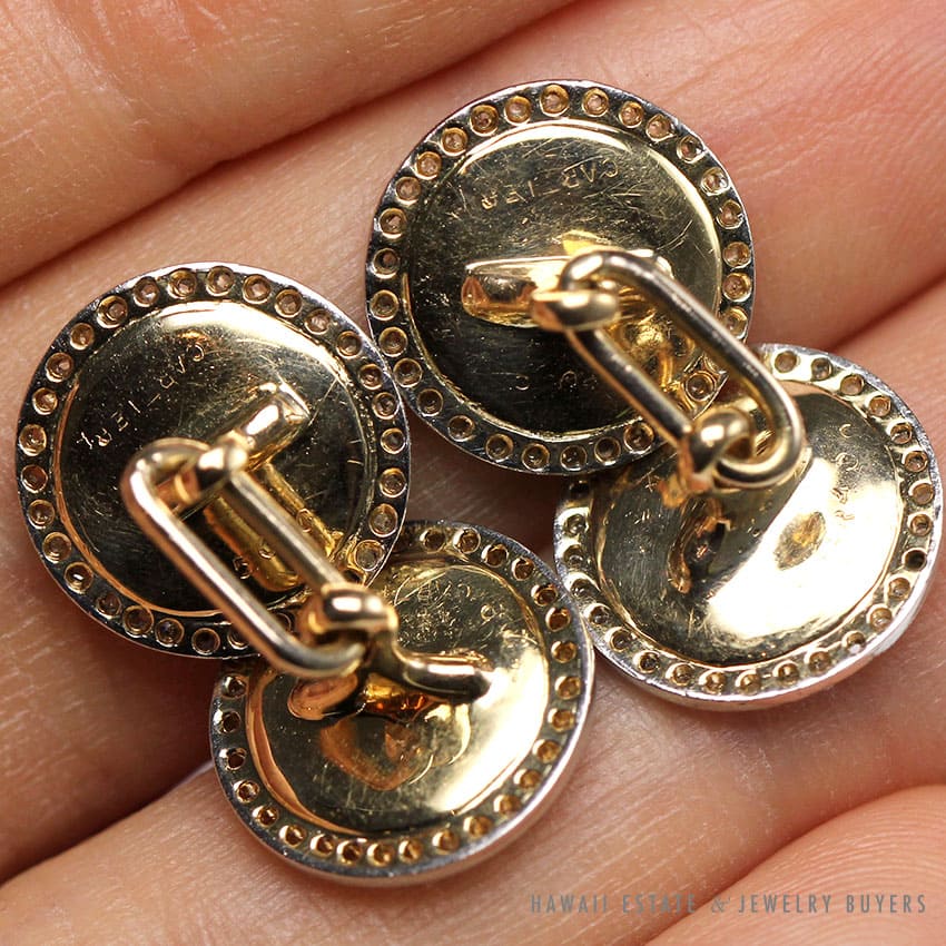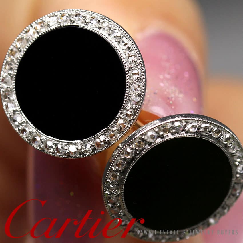 DescriptionAUTHENTIC 1910s ESTATE CARTIER; SIGNED “CARTIER 506”ROSE CUT DIAMONDSACID TESTED TO BE 14K GOLD $1,800.00Out of stockSKU: 2380-06Category: Pre-owned Designer JewelryTags: CARTIER, cuff linksRelated StylesBernard K Passman Black Coral 18K White Gold Diamond Ring$1,900.00Cartier Diamond Trinity Ring (SZ 57/US 8 )$14,500.00Roberto Coin Baby O Earrings$16,000.00VINTAGE MIKIMOTO AAA AKOYA PEARL 14K BROOCH & SCREW BACK EARRINGS SET$4,000.00