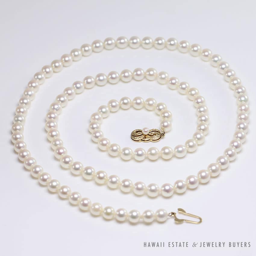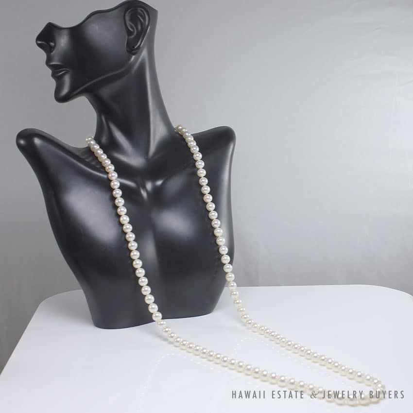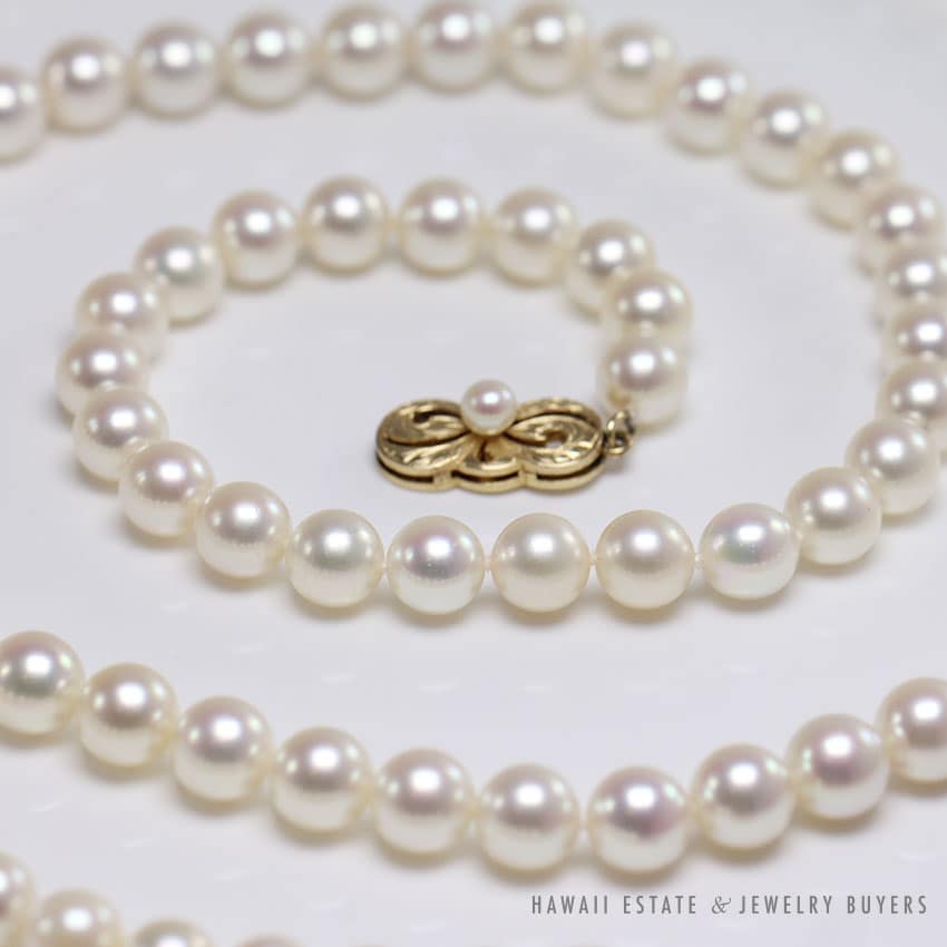 DescriptionCreamy white approx 6.5mm Mikimoto pearl 14k yellow gold engraved clasp necklaceApprox 30 inches longStamped “14K”$1,700.00Out of stockSKU: MJ022120-04Categories: Pre-owned Designer Jewelry, Pre-owned Vintage JewelryRelated StylesCertified Grade “A” Lavender Jade Yellow Gold Ring$2,700.00Natural Grade A White Jade Archer Ring$3,800.00GIA CERTIFIED NATURAL GRADE A LAVENDER JADEITE JADE PENDANT W/ DIAMONDS$5,900.00Estate Large 18mm South Sea Pearl Necklace$18,000.00