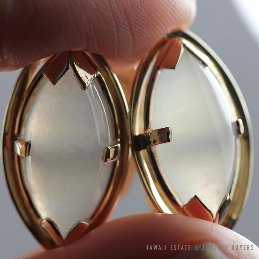 Description$1,800.001 in stockVINTAGE GLASS JADE WHITE 14K YELLOW GOLD CUFF LINKS quantityAdd to cartMake OfferSKU: 2193-09Category: Pre-owned Vintage JewelryRelated StylesGIA CERTIFIED MARQUISE NATURAL JADE APPLE GREEN COLOR JADE RING GIA JADE SZ 5.25$1,000.00Estate Large 18mm South Sea Pearl Necklace$18,000.001.65ct Natural Pink Sapphire and Diamond Ring$6,500.00Natural Grade A White Jade Archer Ring$3,800.00