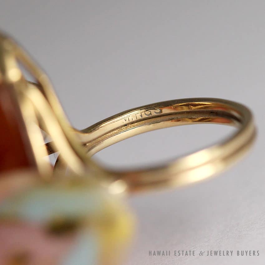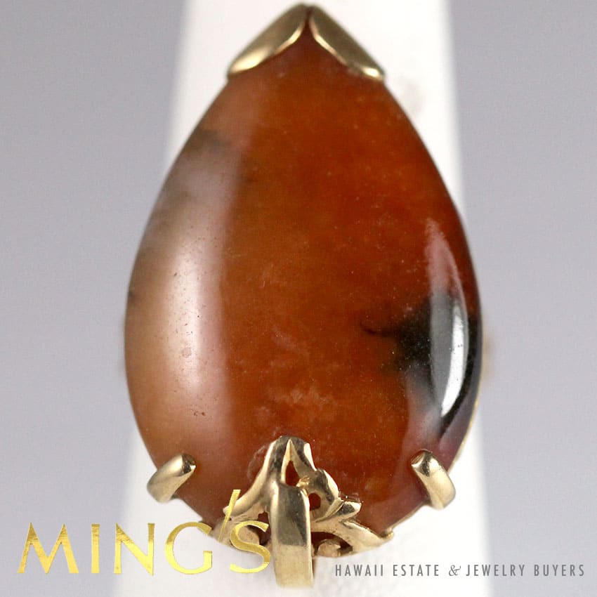 Descriptionstamped: MING’S 14K$2,100.001 in stockVINTAGE MING'S HAWAII BROWN JADE 14K YELLOW GOLD RING SIZE 3.25 quantityAdd to cartMake OfferSKU: AC1015-36Category: Pre-owned Ming's JewelryRelated StylesMing’s Hawaii Pearl & Multi-Color Jade Cluster 14K Ring$3,580.00Ming’s Hawaii Pale Green Twin Jade Ball & White Pearl Ring$1,600.00Ming’s Hawaii Bi-Color Jade Flower Ring$2,500.00Ming’s Hawaii Twin Jade Ball Pearl Ring$1,760.00