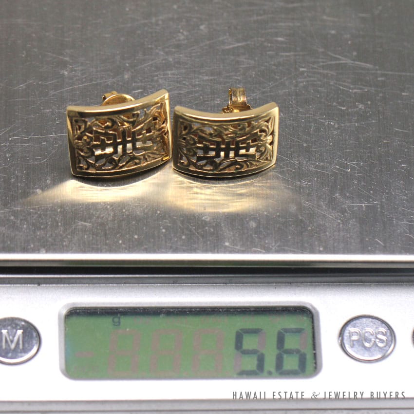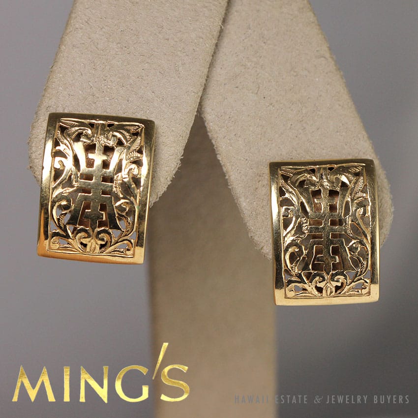 DescriptionStamped: MING’S HK 14KEARRINGS MEASURE APPROXIMATELY 18 X 13MM** PLEASE NOTE: BACKINGS ARE REPLACEMENTS AND TWO DIFFERENT$950.00Out of stockSKU: 2329-04Categories: Pre-owned Ming's Jewelry, Pre-owned Vintage JewelryRelated StylesGIA Grade A Nephrite Jade Twist Bangle$3,500.00Certified Grade “A” Lavender Jade Yellow Gold Ring$2,700.00Certified Grade A Natural Jade Cabochon Ring$5,800.00Antique Victorian Pearl Old Mine Cut Diamond Circle Pin$2,100.00