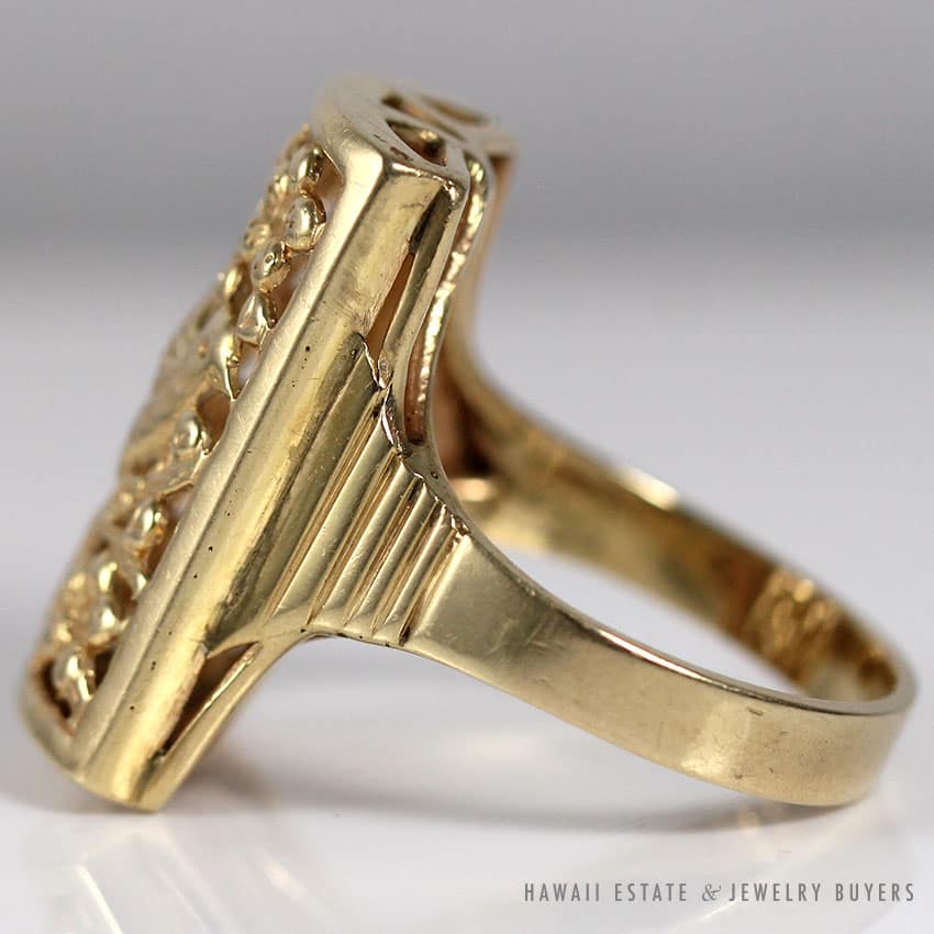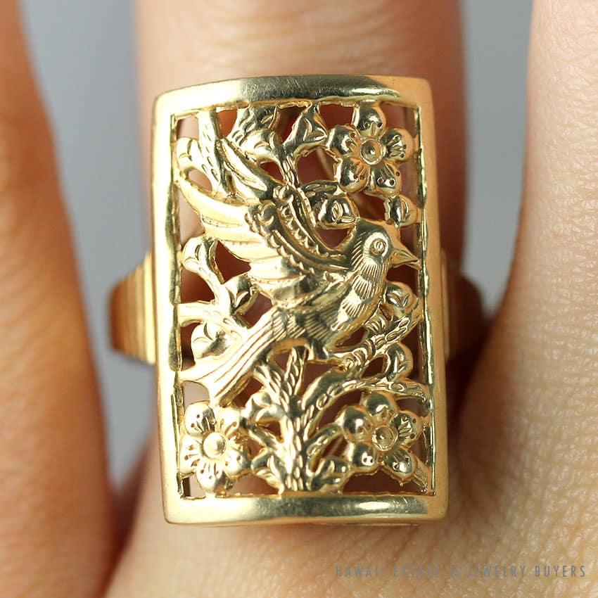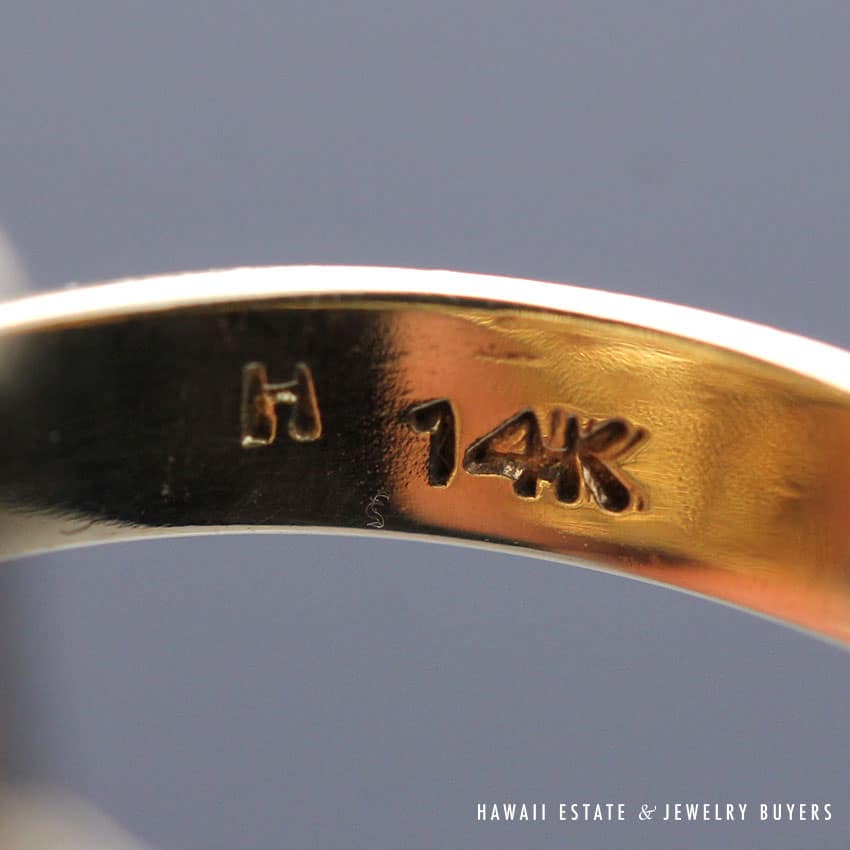 Descriptionstamped: 14k H (please see photo)$330.00Out of stockSKU: 2116-01Category: Pre-owned Ming's JewelryRelated StylesMing’s Hawaii Pearl Cluster Leaf 14K Ring$2,140.00Ming’s Lavender Jade & Pearl Ring$3,600.00Ming’s Jade Hinged Bangle$3,500.00Ming’s White Jade14K Yellow Gold Set$3,800.00