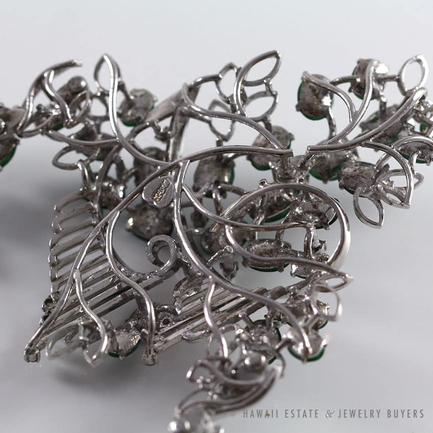 LADY’S SILVER AND JADEITE DIAMOND NECKLACE & BRACELET SET. R.I. 1.66