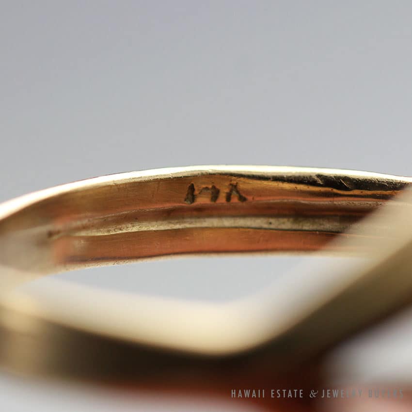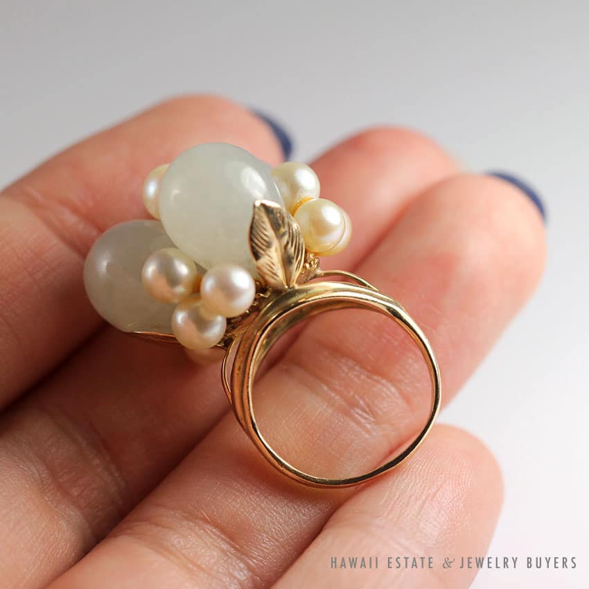 DescriptionSTAMPED 14K$2,175.001 in stockVINTAGE PALE GREEN JADE & CULTURED PEARL 14K YELLOW GOLD RING SIZE 5 quantityAdd to cartMake OfferSKU: L032019-10Category: Pre-owned Ming's JewelryRelated StylesMing’s Green Jade Cabochon Flower Border Ring$1,800.00Ming’s Hawaii Pearl Cluster Flower 14K Ring$1,100.00Ming’s Multi Color Jade & Pearl Grid Ring$1,900.00Ming’s Lavender Jade & Pearl Ring$3,600.00