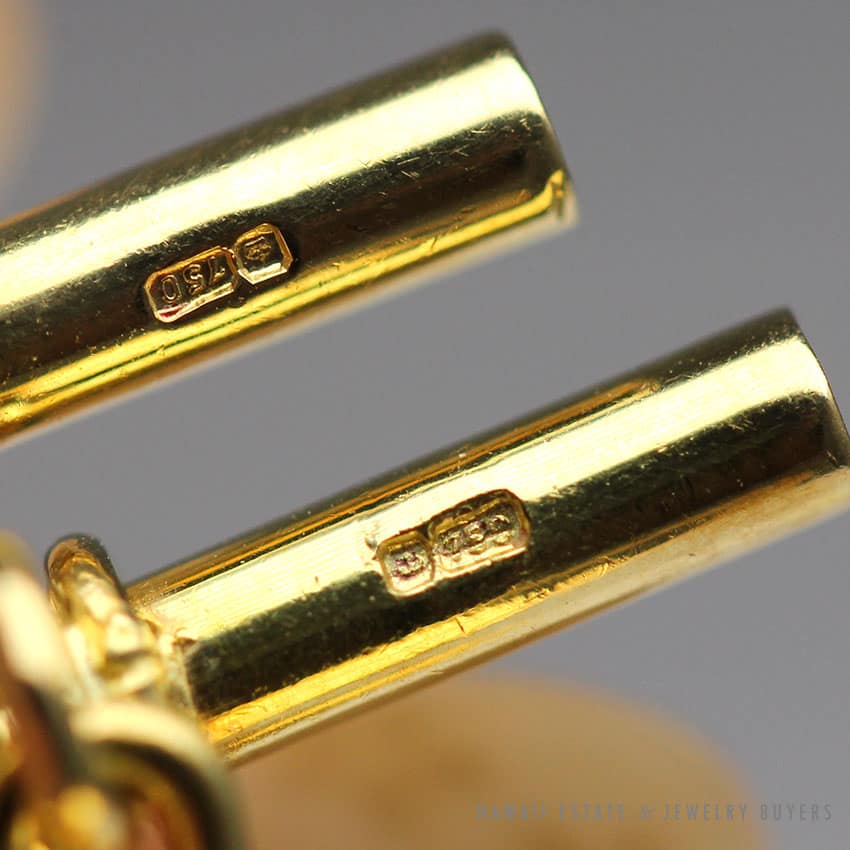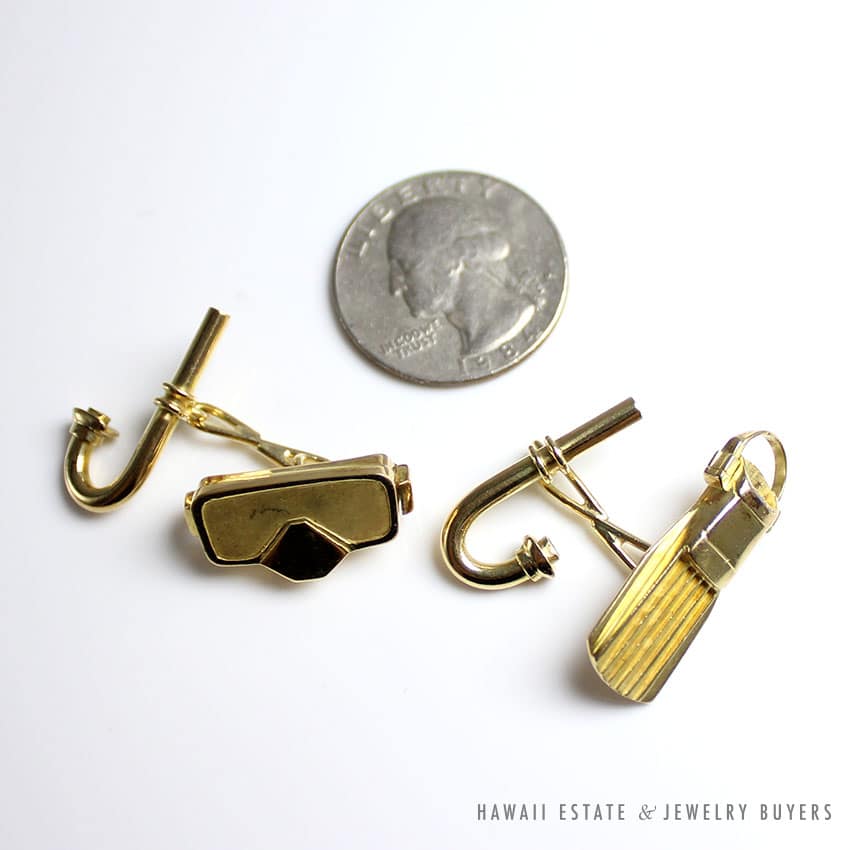 DescriptionCUFFLINKS MEASURE APPROX 25 x 35mmSTAMPED 750$2,500.001 in stockVINTAGE RARE MARTYN PUGH LONDON SCUBA SNORKEL MASK FIN 18K YELLOW GOLD CUFFLINKS quantityAdd to cartBuy withMake OfferSKU: CW111418-07Category: Pre-owned Vintage & Jade JewelryRelated Styles1.65ct Natural Pink Sapphire and Diamond Ring$6,500.00Certified White Nephrite Jade Pendant with Multicolored Stones$8,700.001.30ct Pear Shaped Diamond and Emerald Twin Antique Platinum Ring$20,000.00Estate Large 18mm South Sea Pearl Necklace$18,000.00