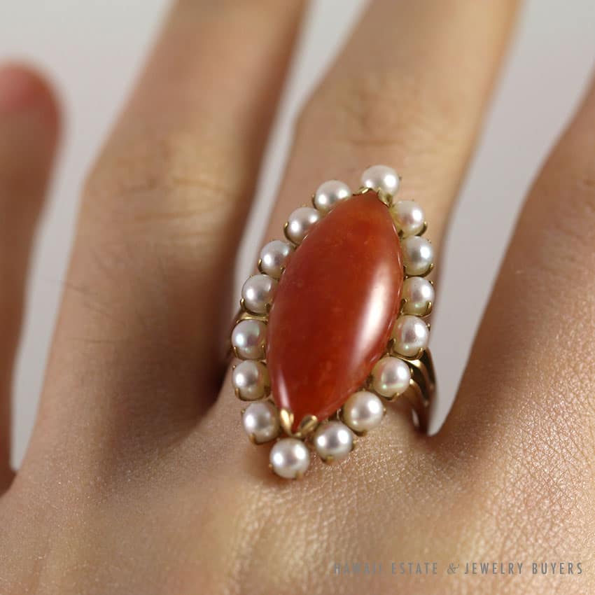 DescriptionSTAMPED: 14K 585Circa … 1960’s $1,600.00VINTAGE RED JADE MARQUISE & PEARL 14K YELLOW GOLD RING SIZE 7 quantityAdd to cartMake OfferSKU: 1990-02Category: Pre-owned Vintage JewelryRelated Styles1.30ct Pear Shaped Diamond and Emerald Twin Antique Platinum Ring$20,000.00Certified Jade White Carved Bangle Bracelet$5,300.00Carved Pierced Bamboo Motif Jade 18K Yellow Gold Cufflinks$1,500.00Natural Grade A Jade Cabochon Ring$8,500.00