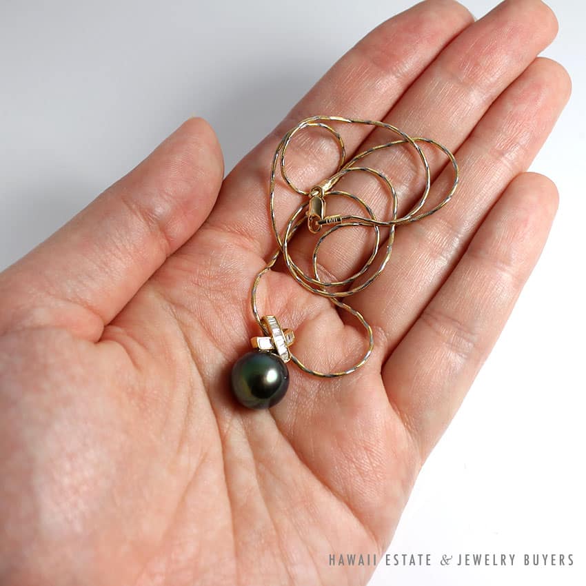 Descriptionchain stamped: 14k;Pendant stamped: 18k 750 D0.15 $900.001 in stockVINTAGE TAHITIAN BLACK PEARL 11.6MM 18K YELLOW GOLD PENDANT & 14K NECKLACE CHAIN quantityAdd to cartMake OfferSKU: 2240-05Category: Pre-owned Vintage JewelryRelated StylesCertified White Nephrite Jade Pendant with Multicolored Stones$8,700.00Vintage Fire Opal & Diamond 18K Ring$7,000.00Antique Ceremonial Certified Nephrite Jade Flute$16,000.001.65ct Natural Pink Sapphire and Diamond Ring$6,500.00