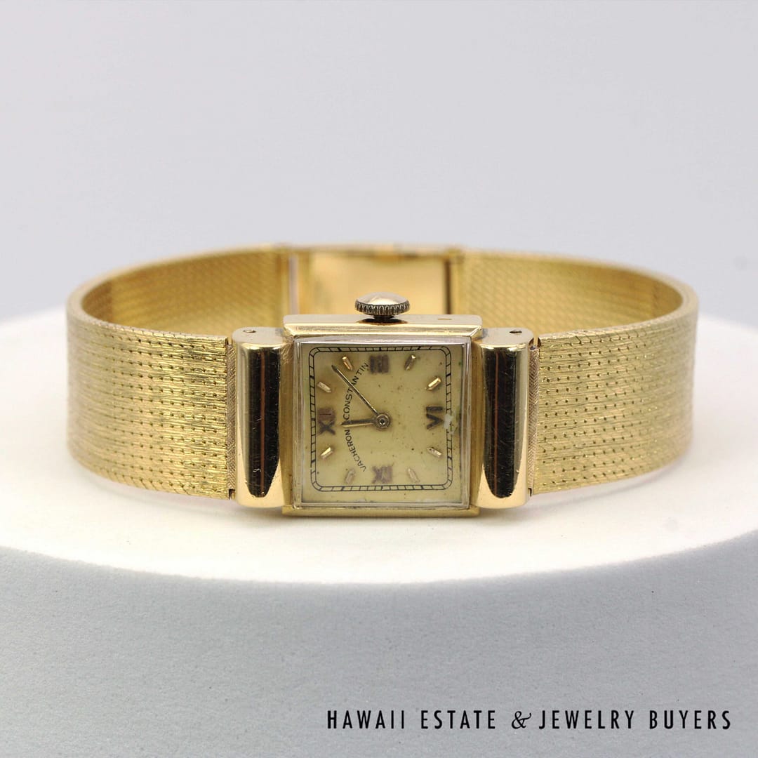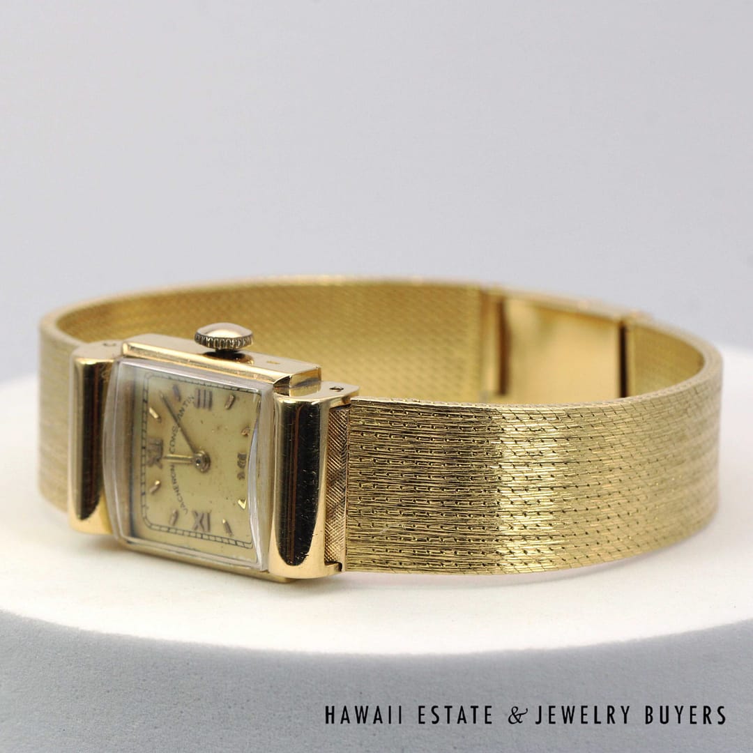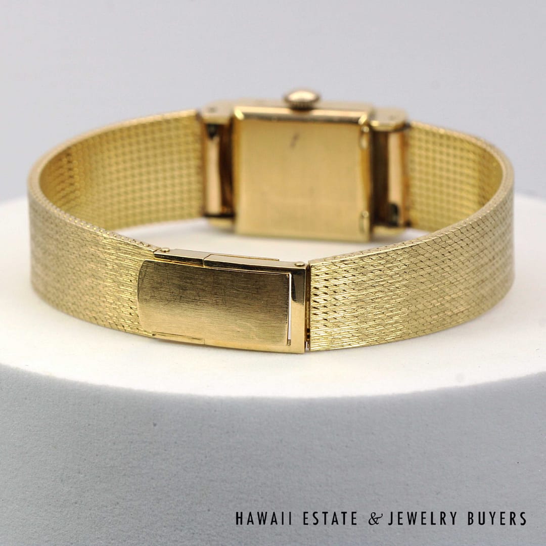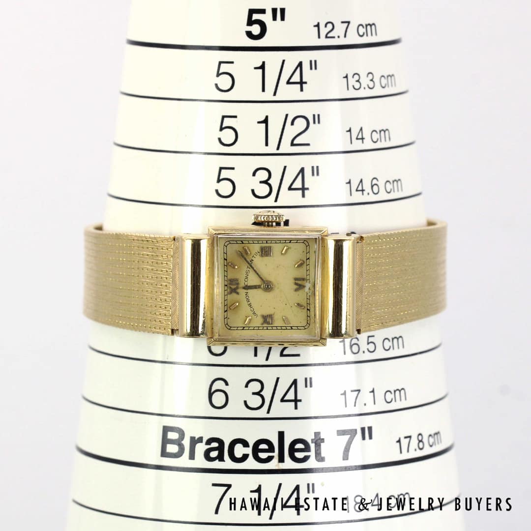 DescriptionVintage Vacheron Constantin 18K yellow gold square ladies wristwatch with original textures gold bracelet and classic dial. 49.9g VACHERON CONSTANTIN VINTAGE WRISTWATCH 18KYG 17mm SIZE 6.25SOLD AS IS.$5,600.001 in stockVintage Vacheron Constantin Square 18K Yellow Gold Ladies Watch 17mm Size 6.25 quantityAdd to cartBuy withMake OfferSKU: 060424-04Category: Pre-owned Luxury WatchesRelated StylesVINTAGE AUDEMARS PIGUET GENEVE 18K YELLOW GOLD AUTOMATIC GENTS STRAP WATCH$7,500.00BLVGARI WATCH WITH HANDWRITTEN LETTER BY DORIS DUKE to LON BENTLEY W/ ENGRAVING$11,000.00ANTIQUE HUNTER’S CASE ELGIN 14K YELLOW GOLD POCKET WATCH W/ PAPER APPRAISAL$4,000.00Rolex DateJust Salmon Mid Size Ladies$4,900.00